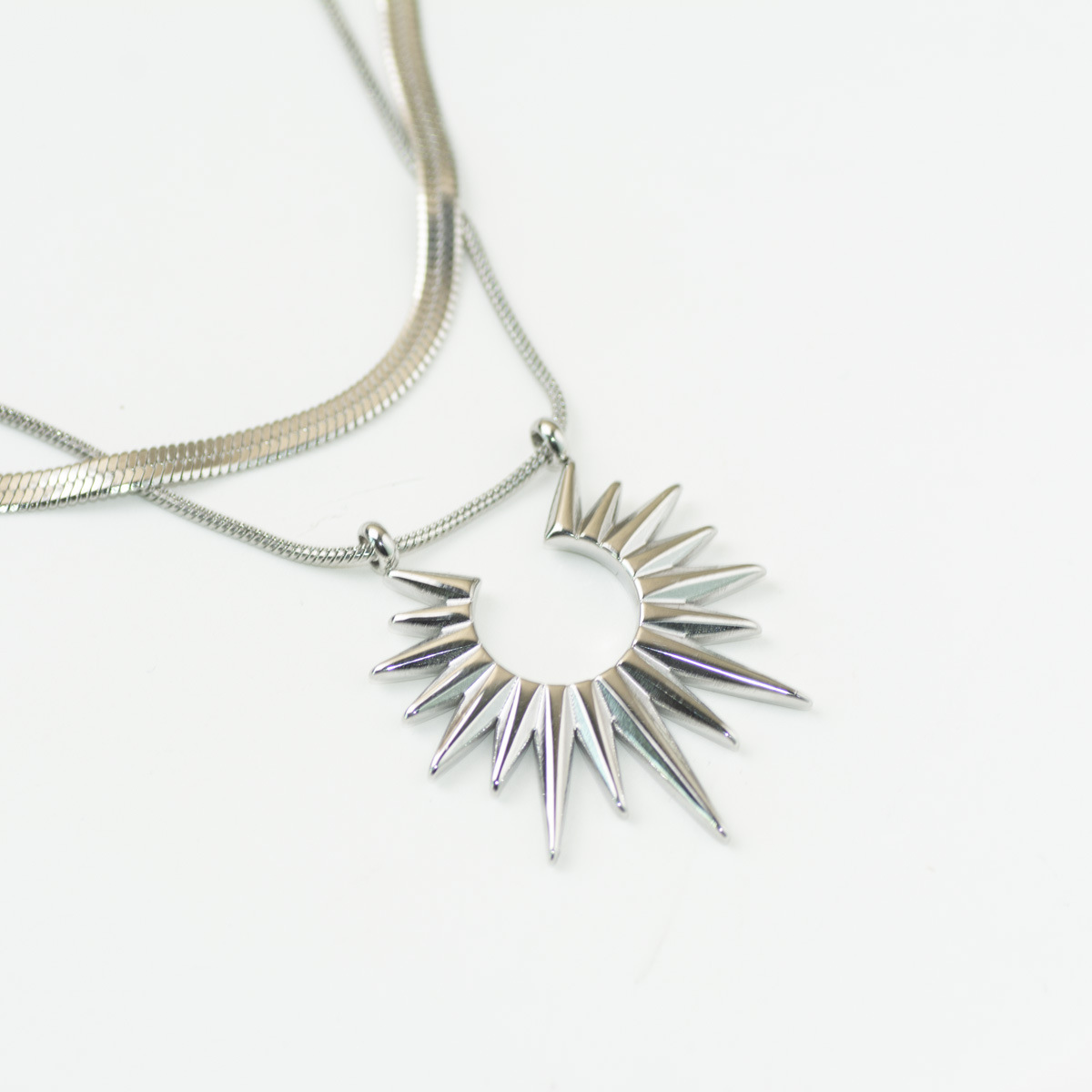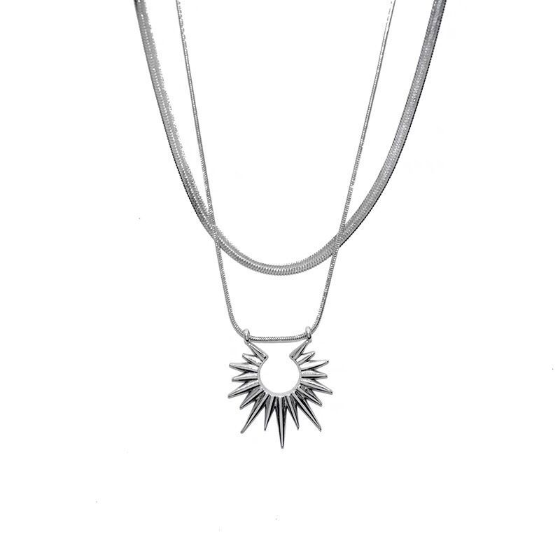 New European and American cross-border sunflower pendant necklace men's double layered titanium steel non-fading high-grade sweater chain