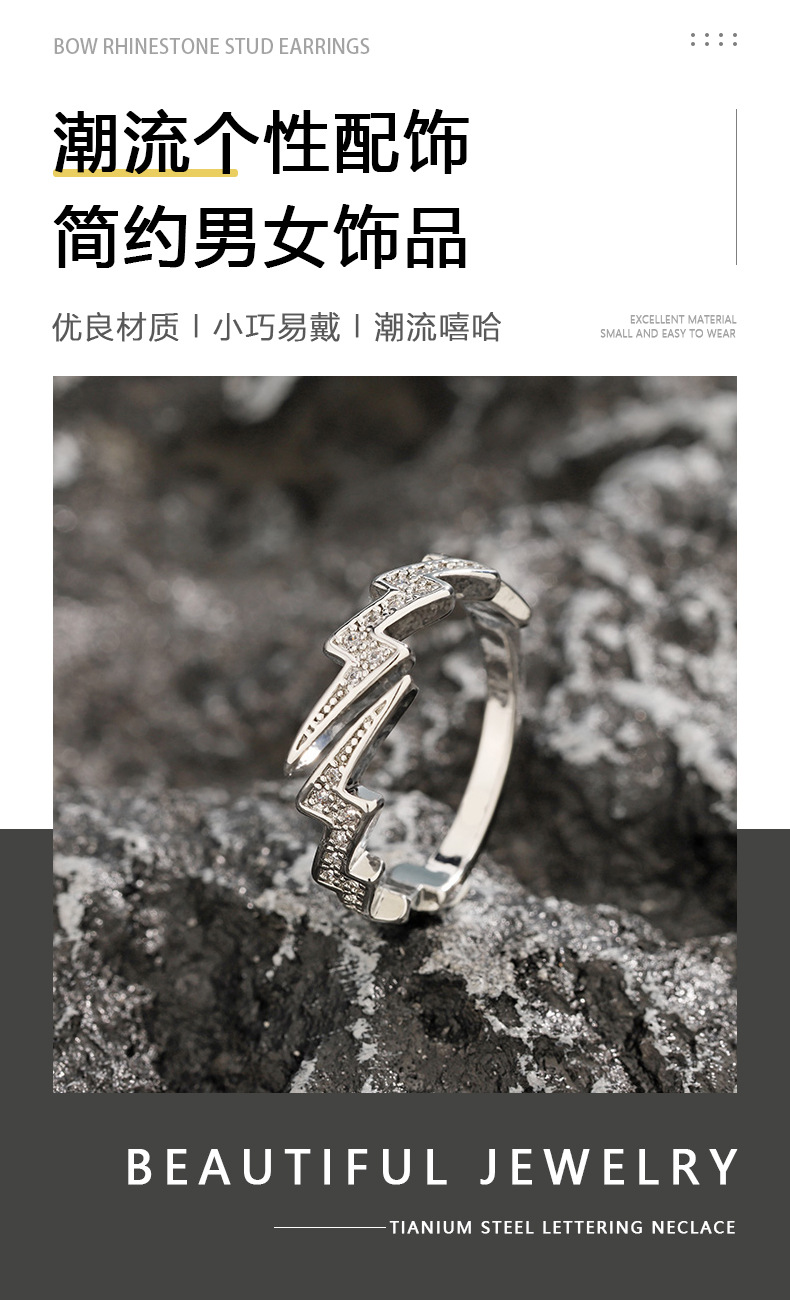 Lightning Ring for Men, Niche Design, Unique and Versatile Ring, Adjustable, Niche Design, Trendy Jewelry