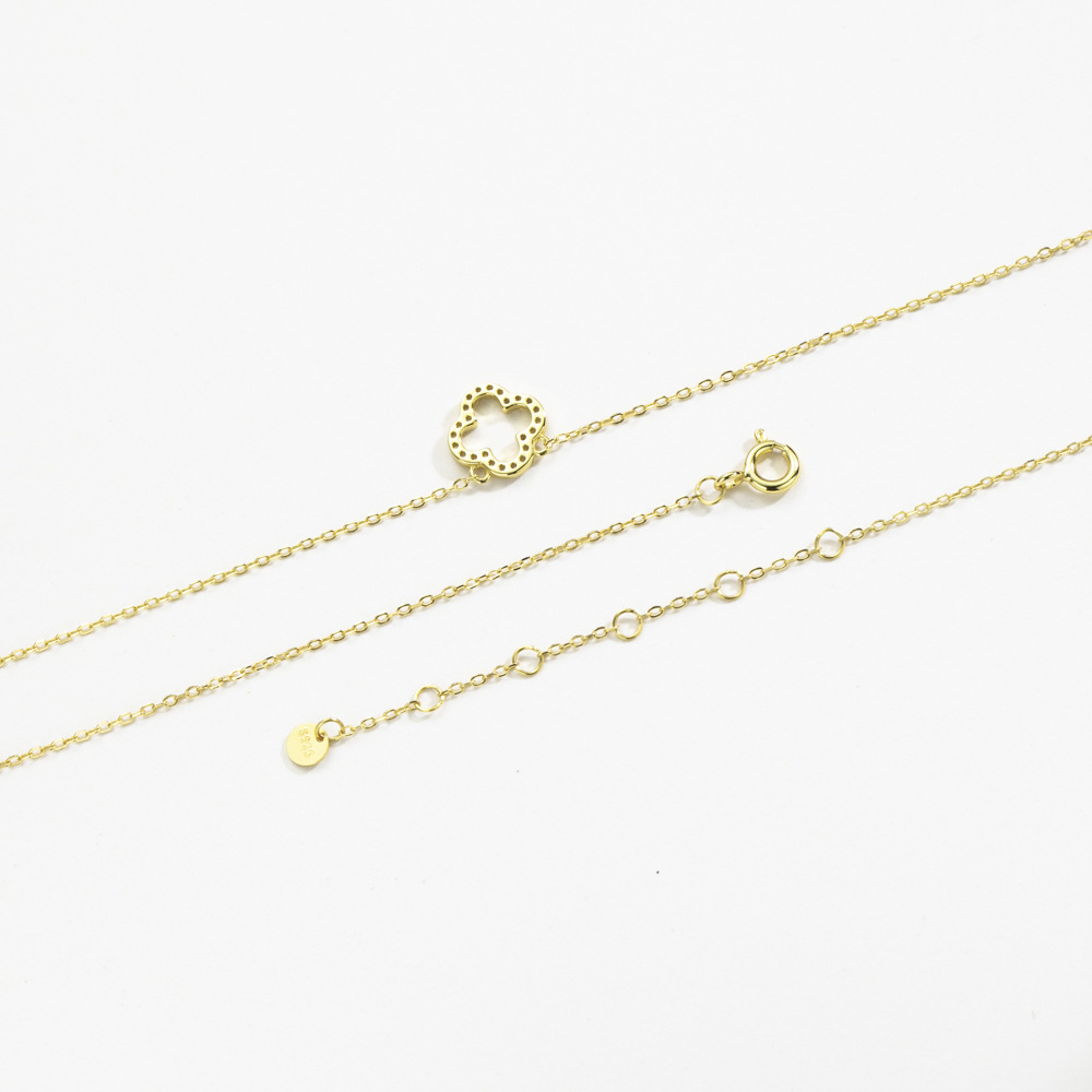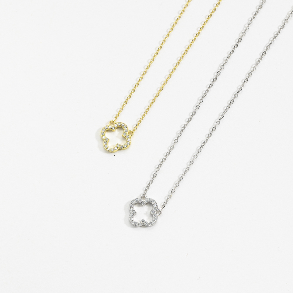New s925 silver diamond four-leaf clover pendant women's clavicle chain wholesale necklace Joker European and American Amazon hot sale