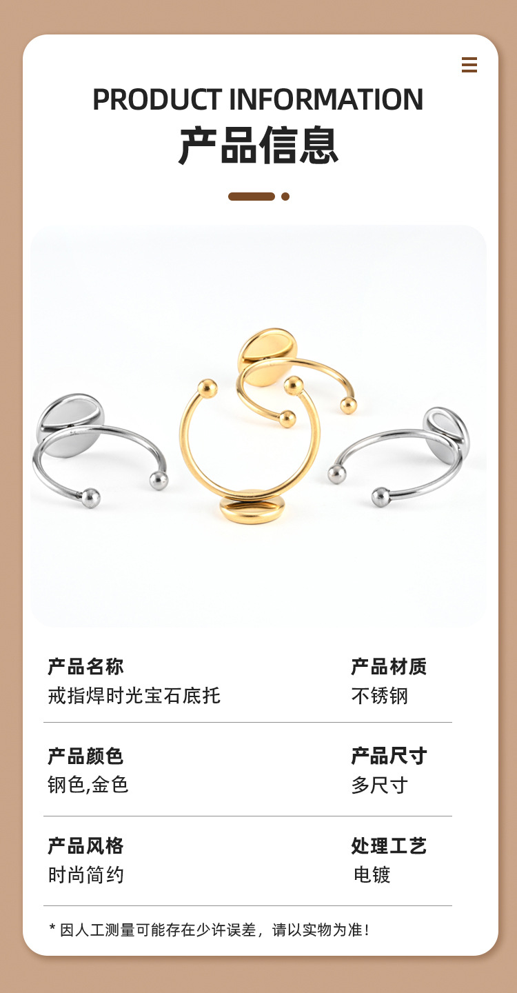 Foreign trade jewelry stainless steel ring welding time gem base diy adjustable ring base Accessories Wholesale