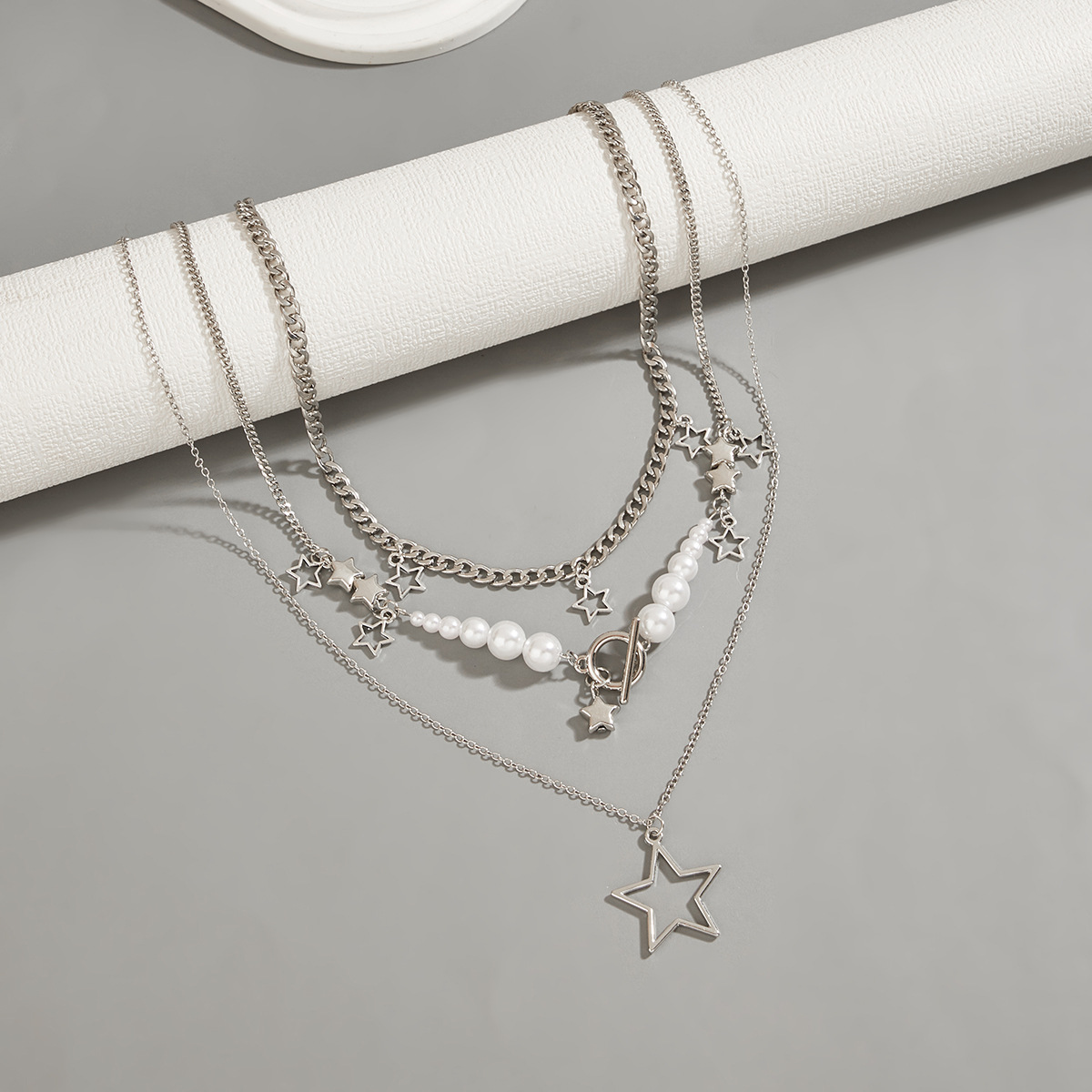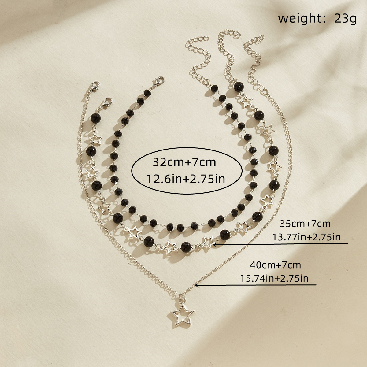 European and American Cross-border Hot-selling Jewelry Simple Five-pointed Star Tassel suit Necklace Women's Retro Star Round Bead Necklace