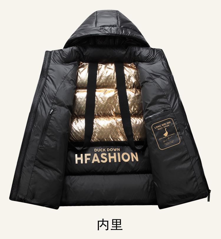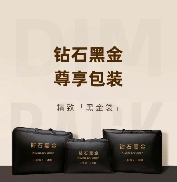 Winter popular graphene diamond black gold down jacket couple casual fashion trendy thickened coat with black gold bag