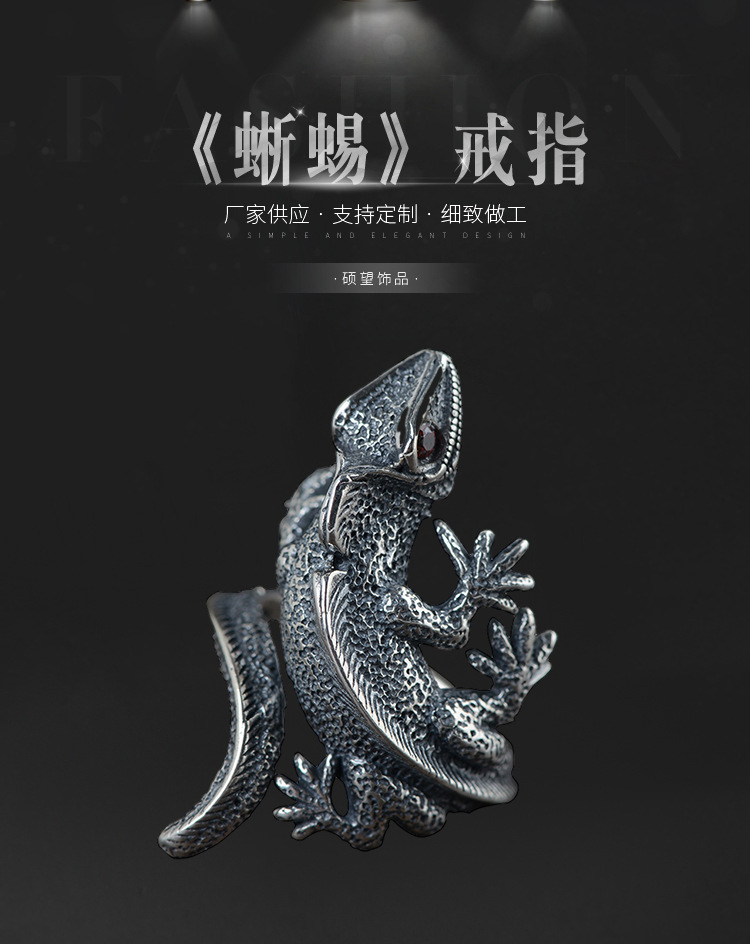 European and American niche design retro lizard ring men's trendy ins style quality fashionable simple index ring in stock