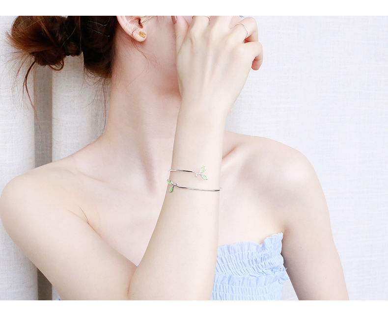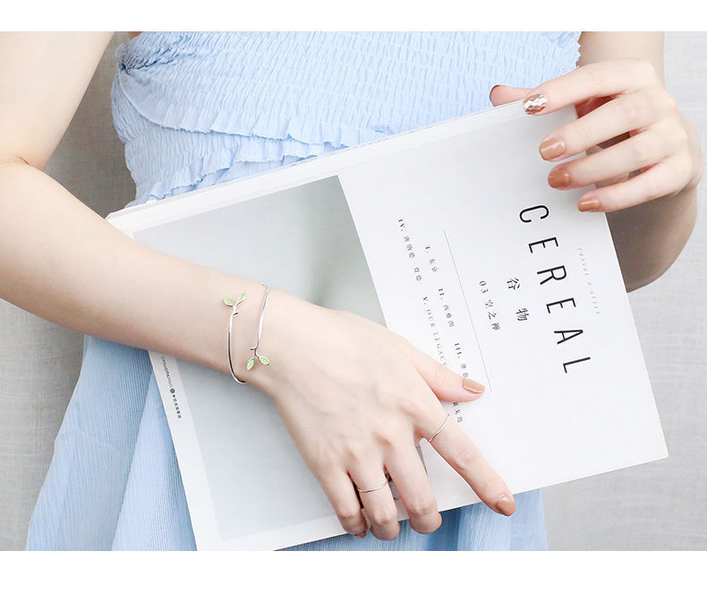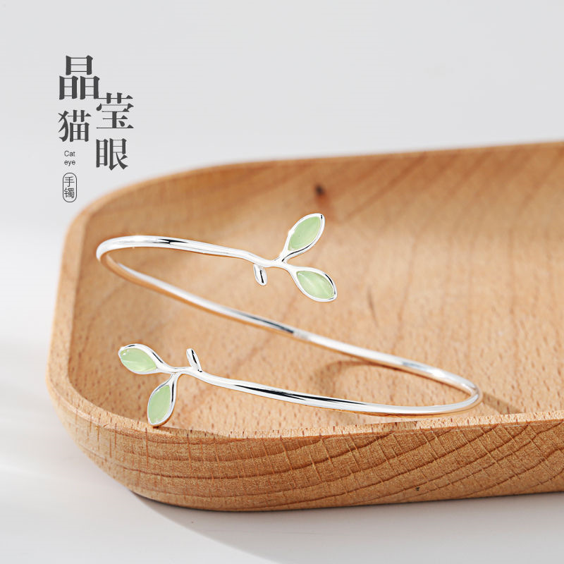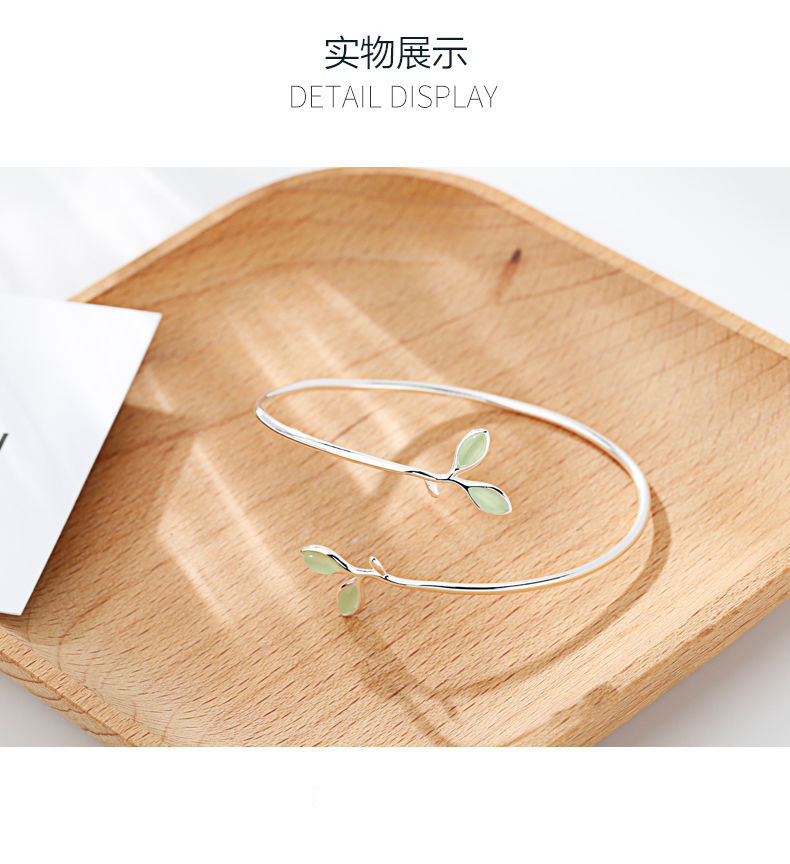 Hot sale New leaf bracelet opal stone female simple student Mori bracelet all-match 925 silver plated bracelet opening