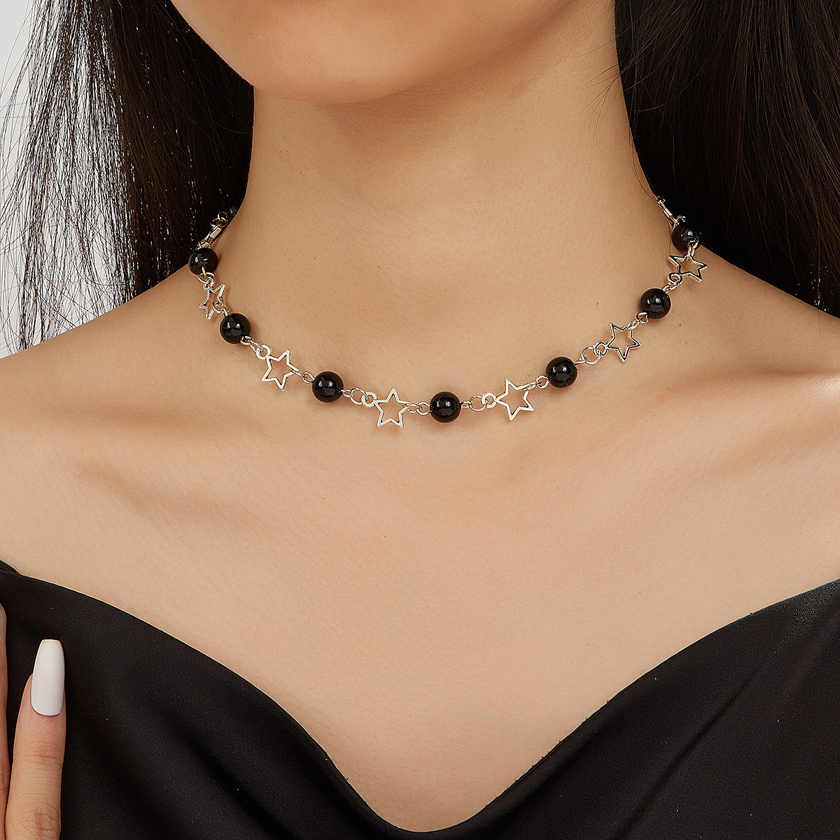 European and American Cross-border Bohemian Simple Pearl Hollow Five-pointed Star Collarbone Necklace Elegant Star-shaped Bead Necklace