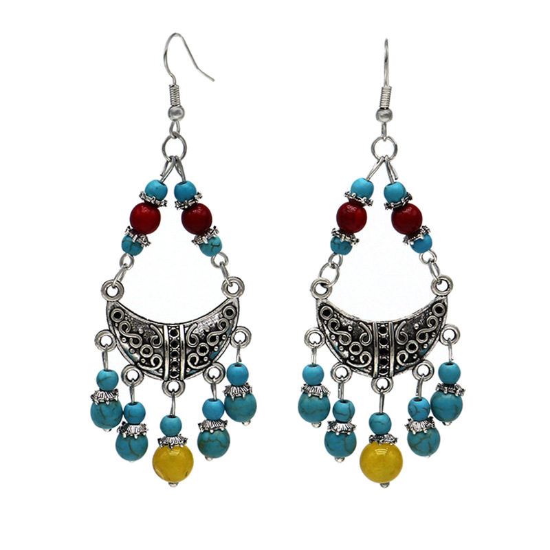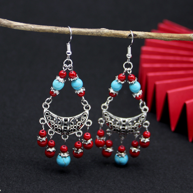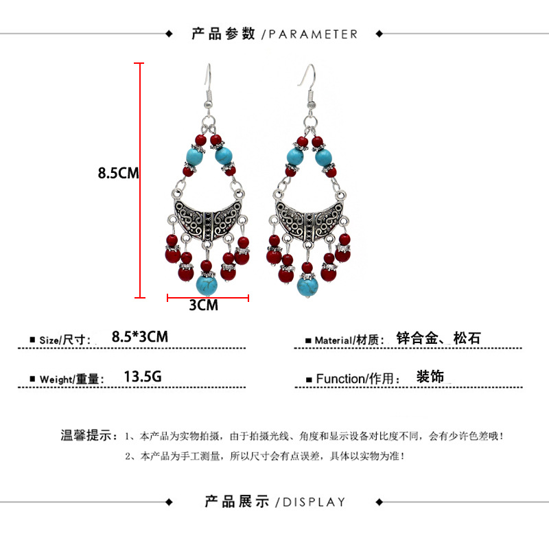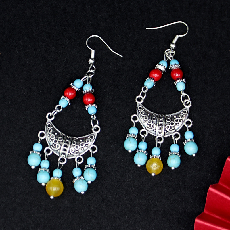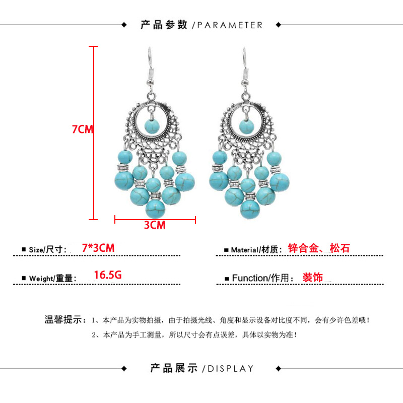 Bohemian style turquoise tassel earrings women's all-match retro Yunnan ethnic exotic fashion earrings jewelry