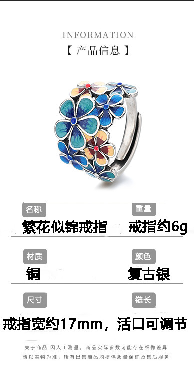 Cloisonne Enamel Flower Ring for Women, Elegant Retro Ethnic Style Opening, Adjustable Creative Index Finger Ring