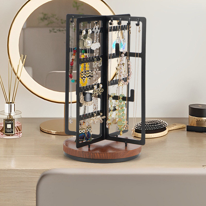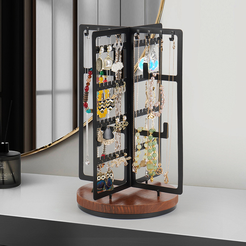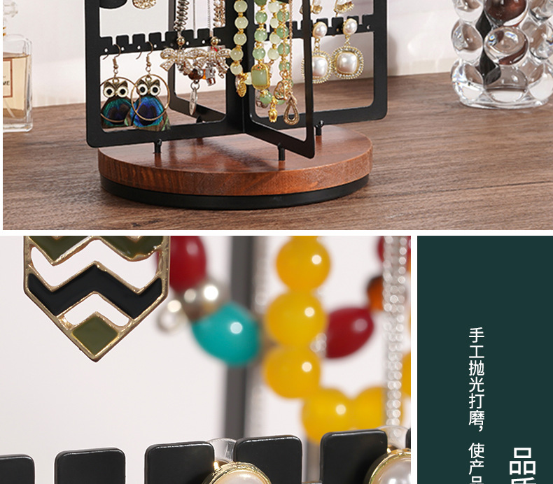 Original design rotating jewelry rack solid wood detachable jewelry display props ring earrings storage rack