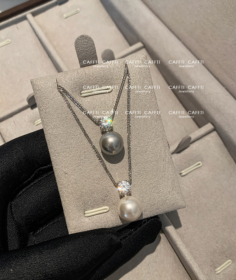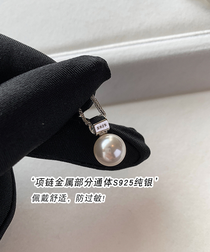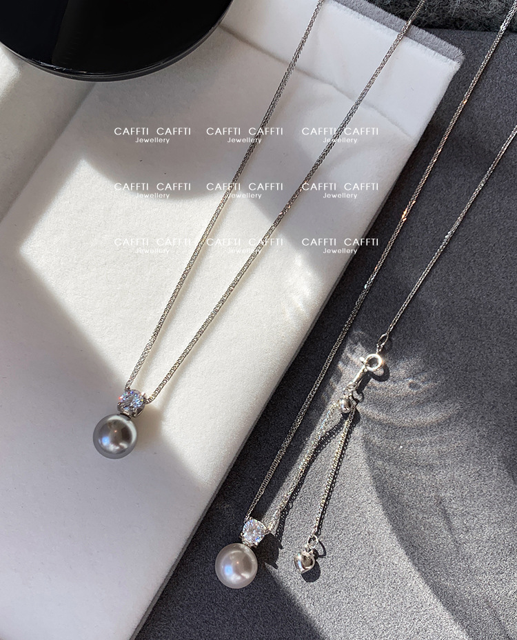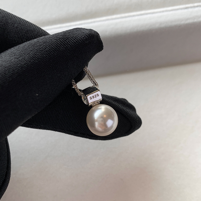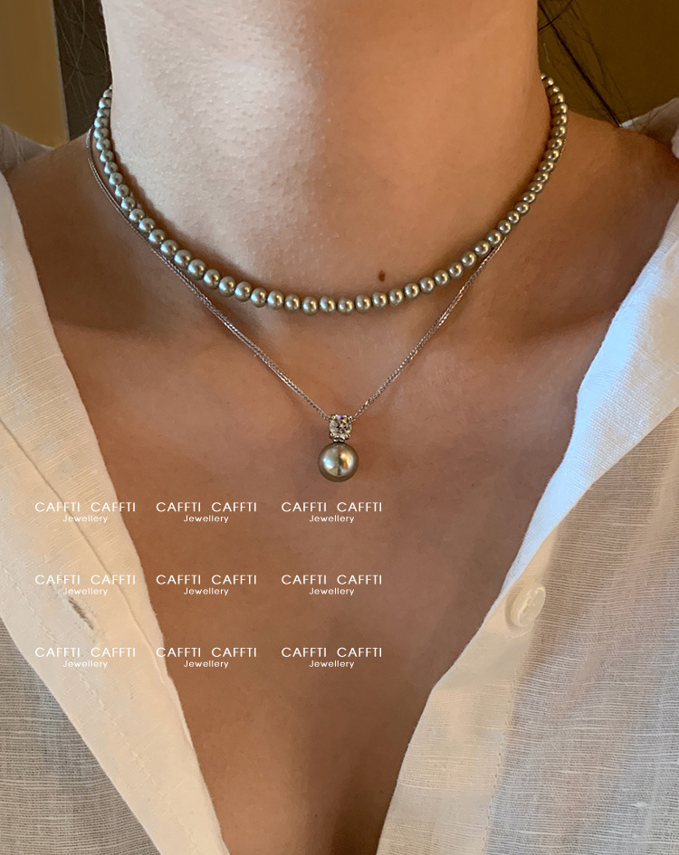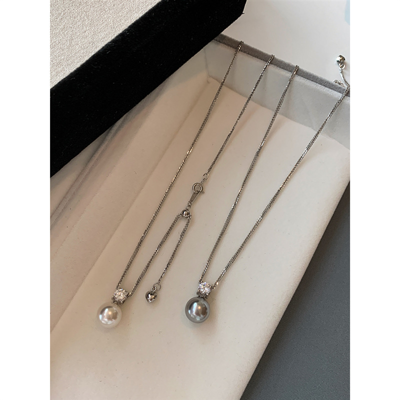 S925 silver Shijia Zhenduo heather gray single pearl pendant pearl necklace women's autumn and winter sweater chain elegant high-end