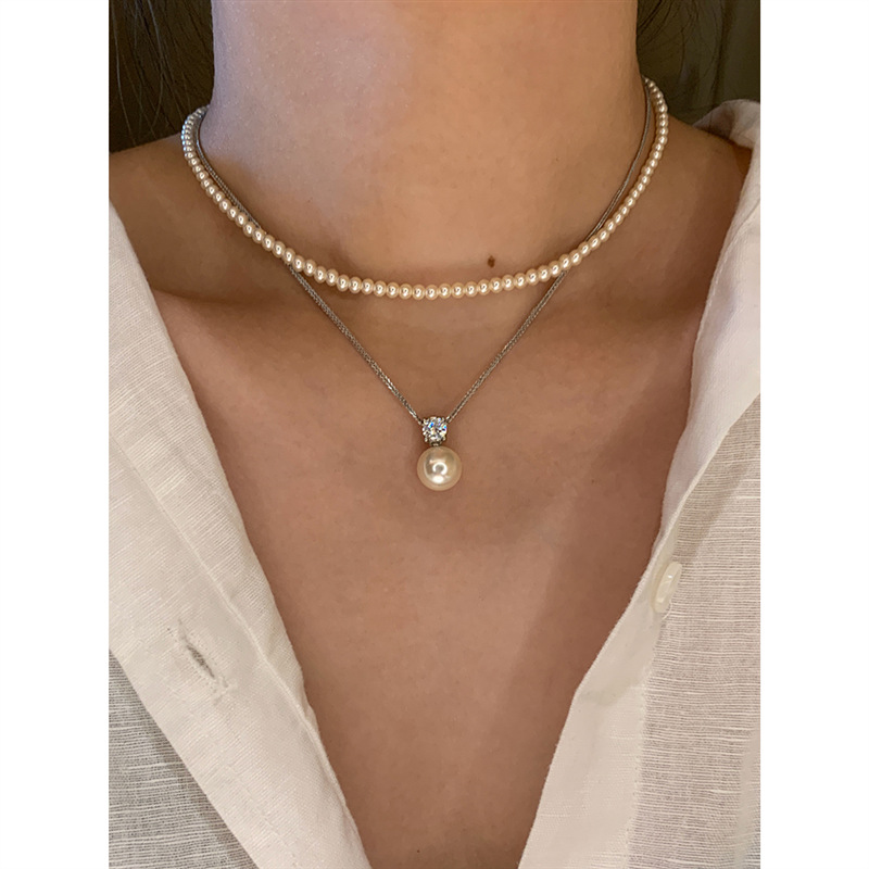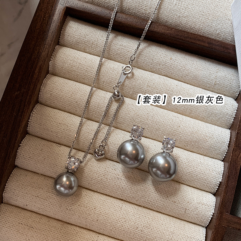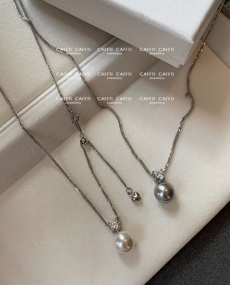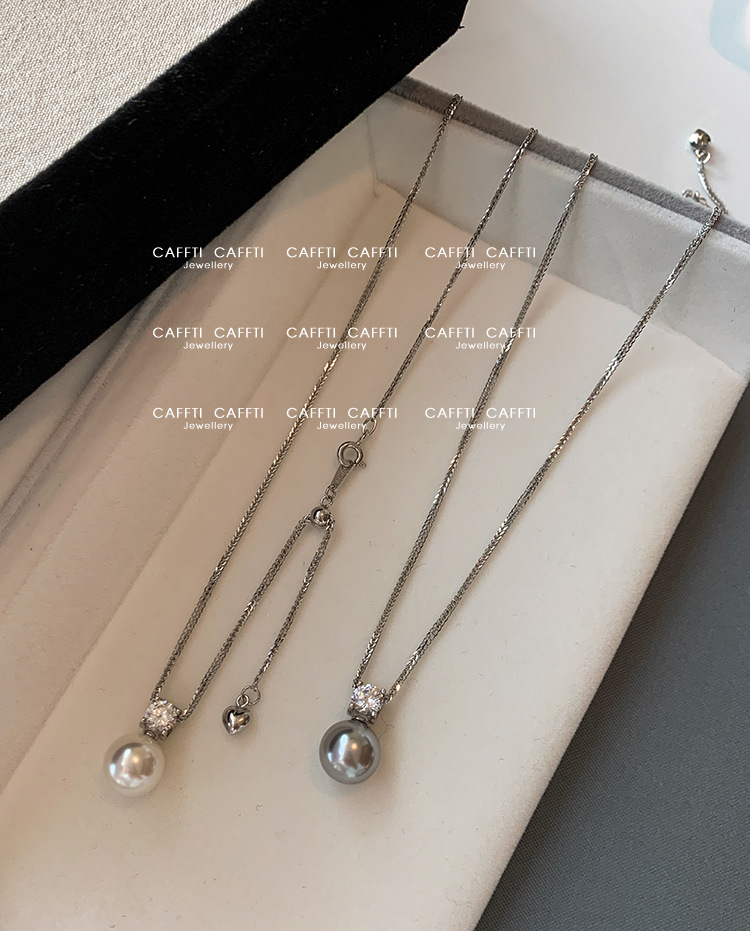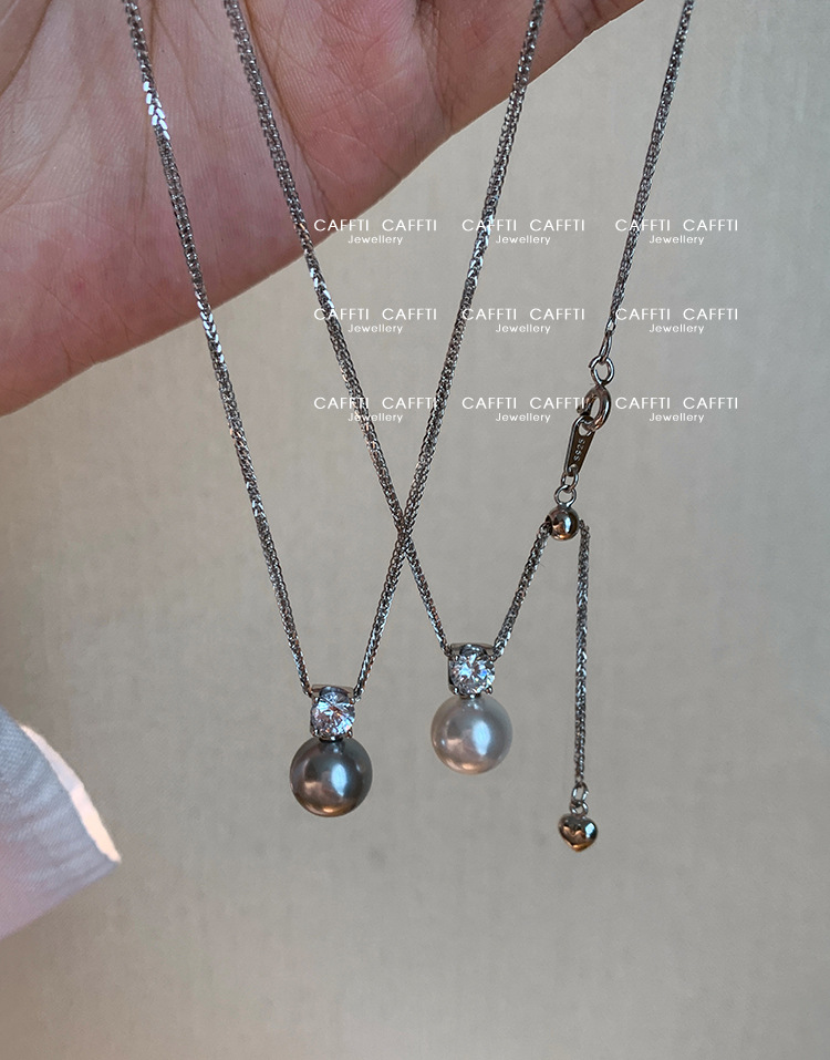 S925 silver Shijia Zhenduo heather gray single pearl pendant pearl necklace women's autumn and winter sweater chain elegant high-end