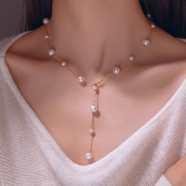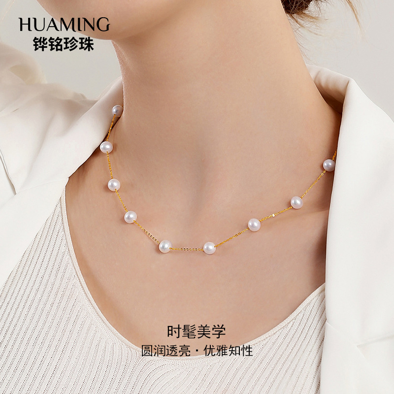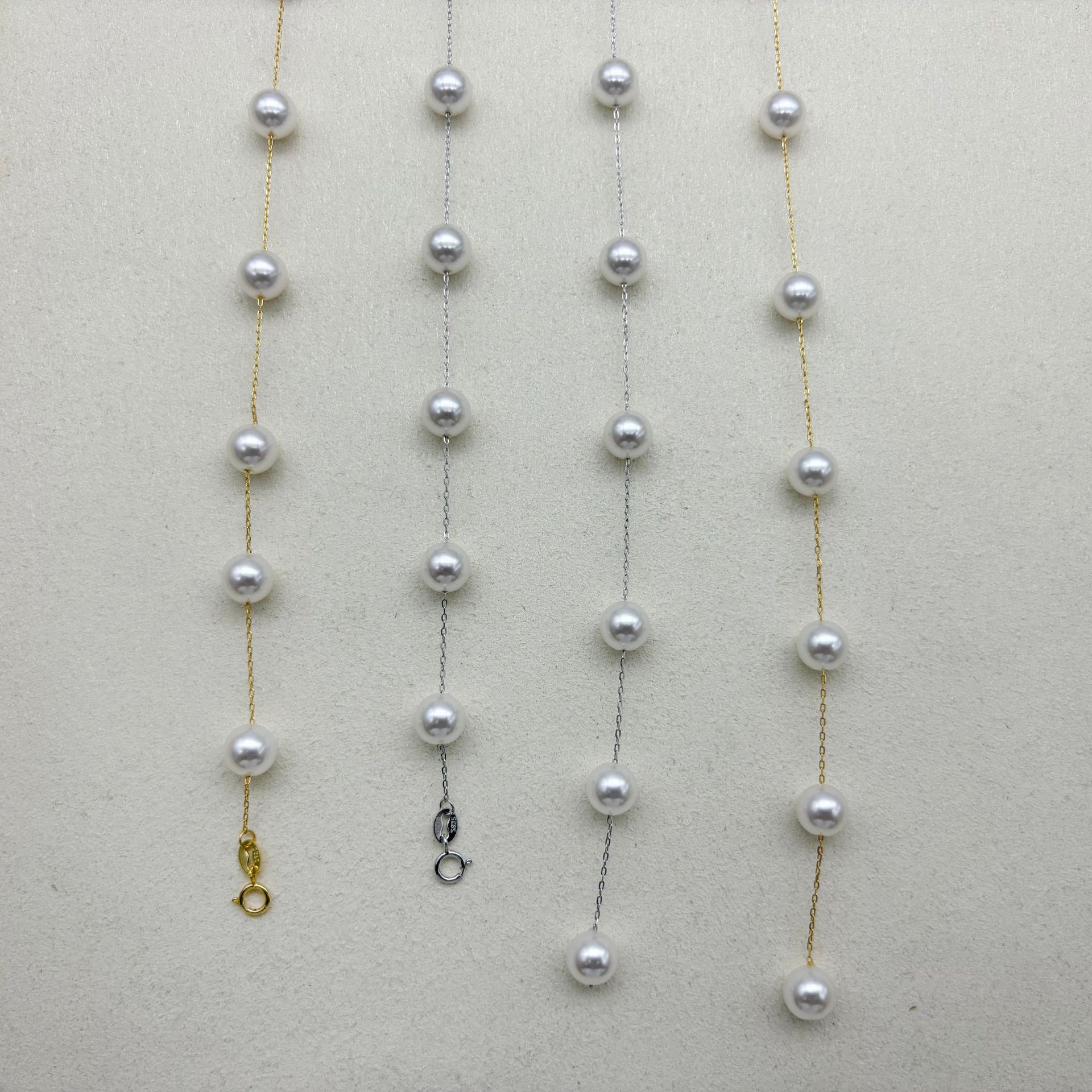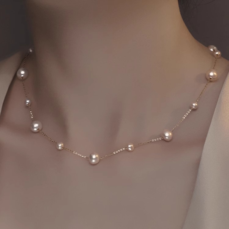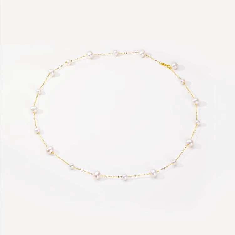 Color: 925 solid silver and gold baby's breath pearl necklace (6mm)