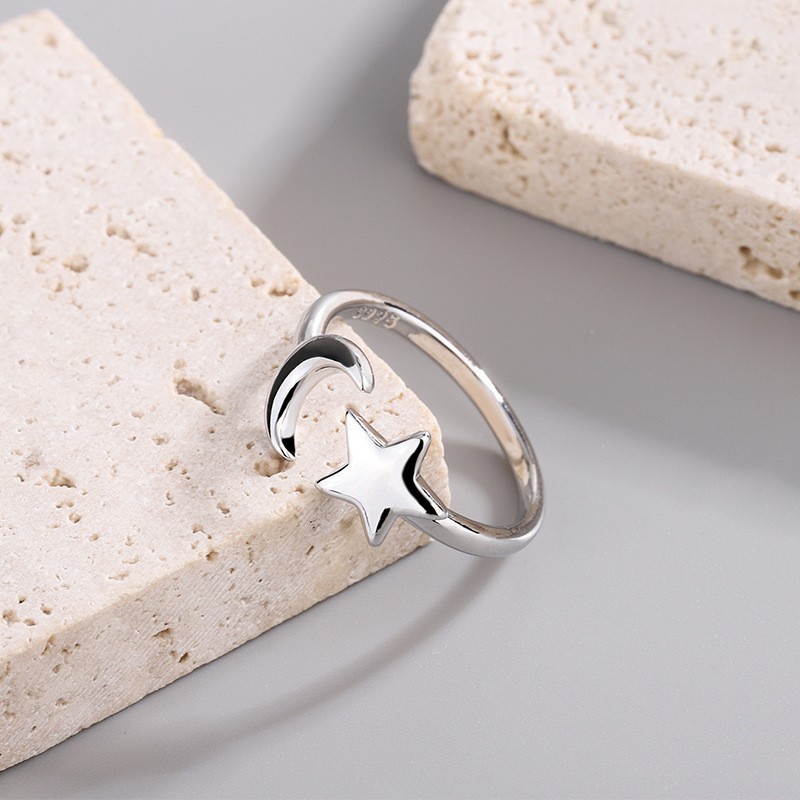 Japanese and Korean Style Star and Moon Ring Women's Simple Elegant Small Fresh and Sweet Student ins Trendy Ring One Piece