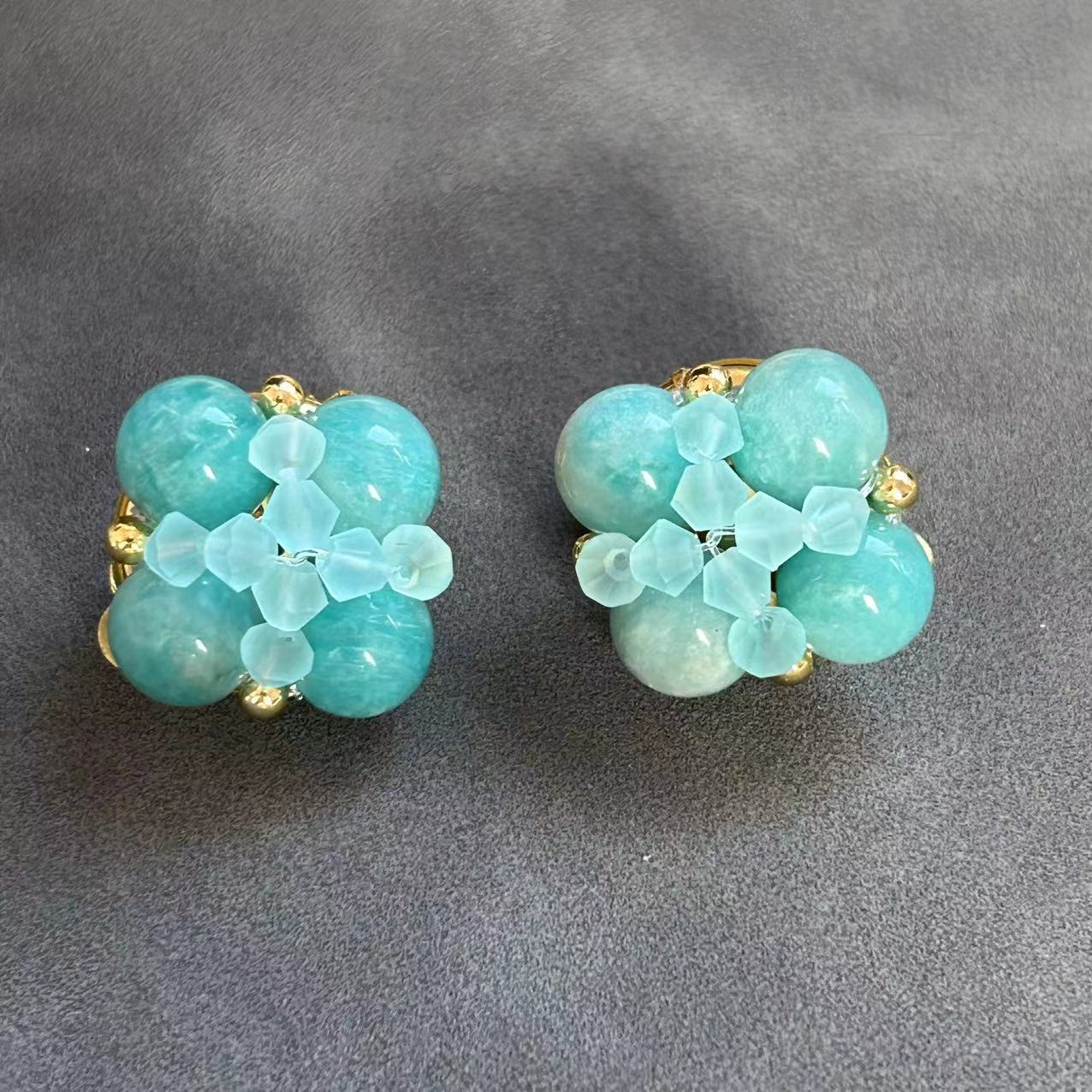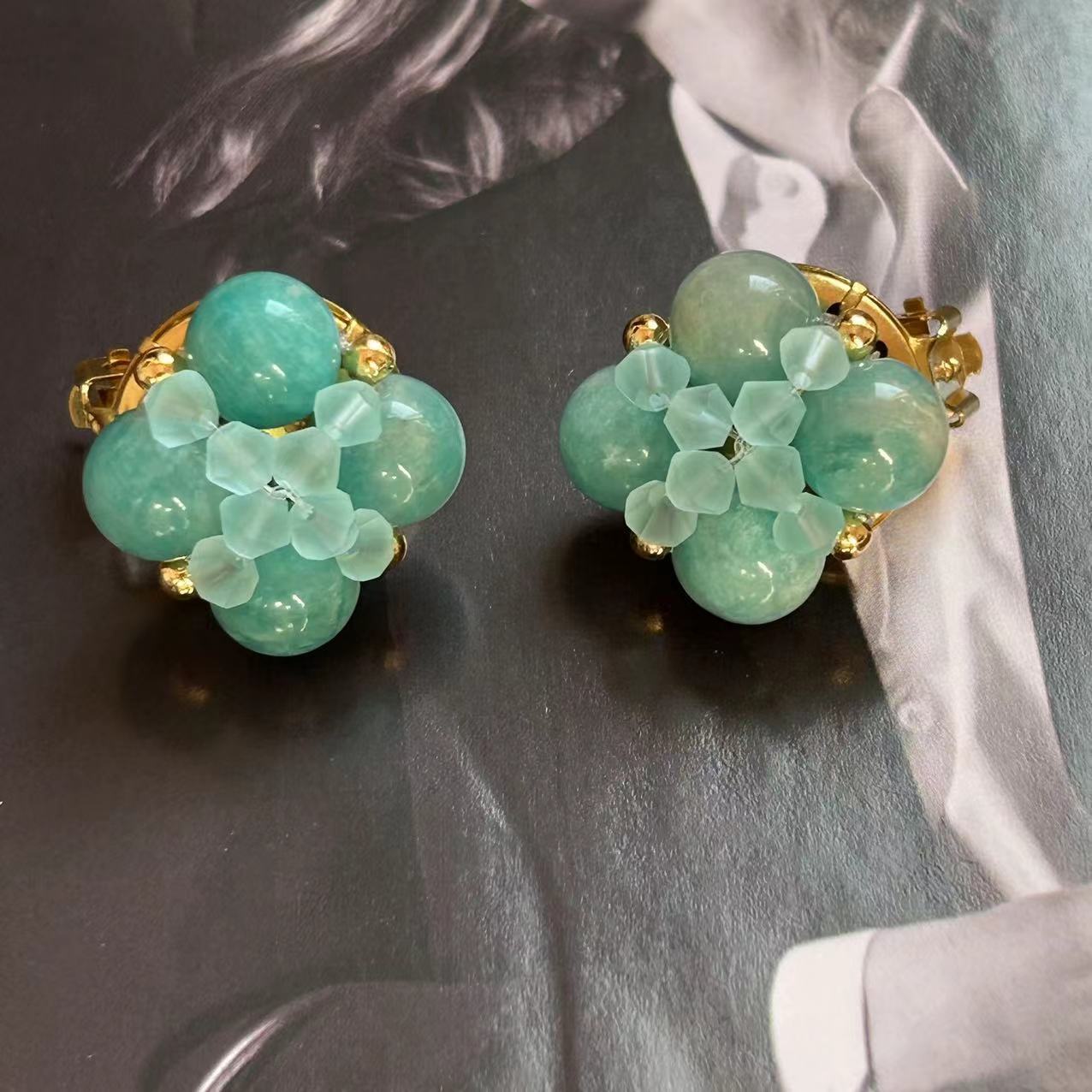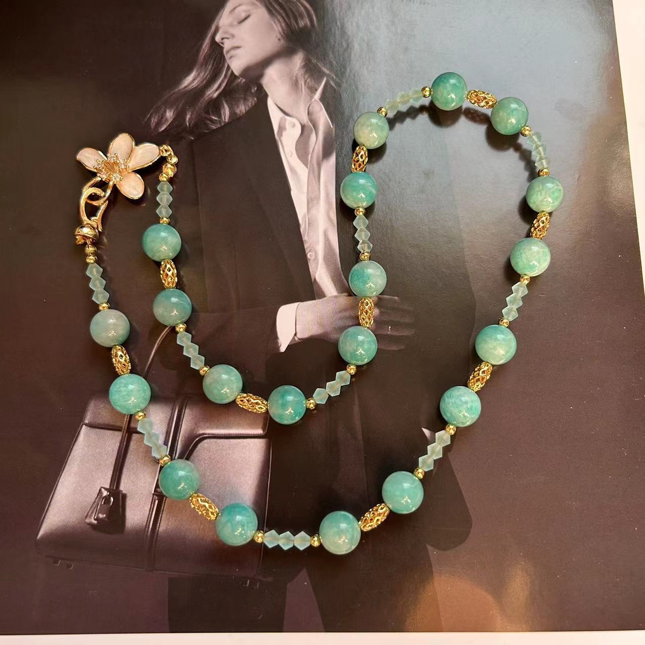Mid-ancient jewelry electroplated real gold New Natural Stone beaded necklace earrings suit retro women's Tianhe stone necklace