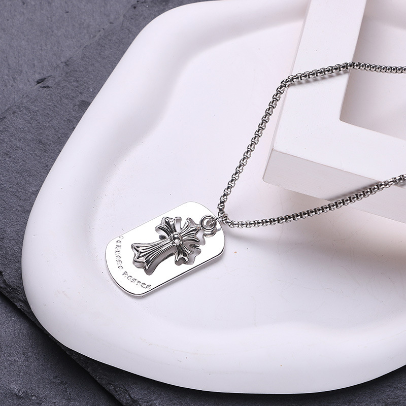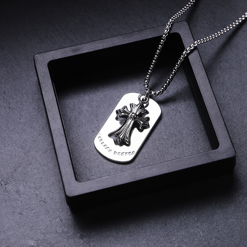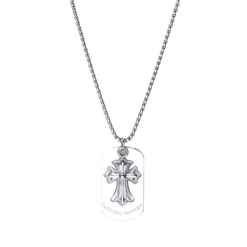 Color: Double cross pendant - color retention/square pearl chain 70cm