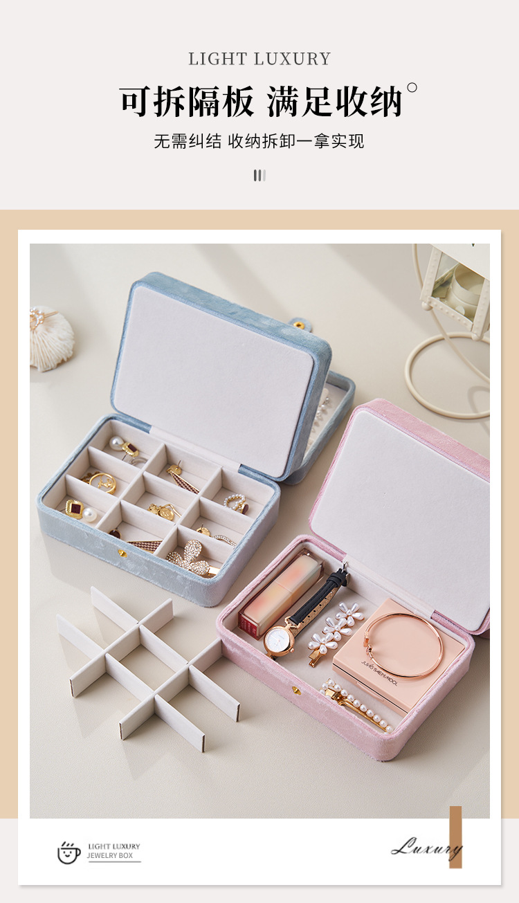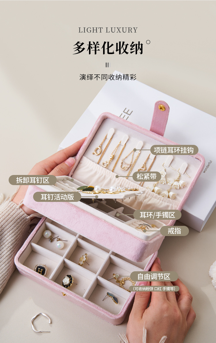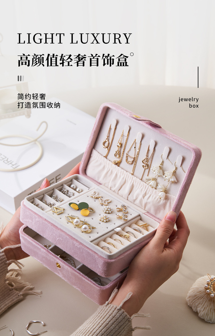 New Flannel Multi-layer Jewelry Box Earrings Earrings Necklace Rings Jewelry Storage Box Portable Jewelry Jewelry Box