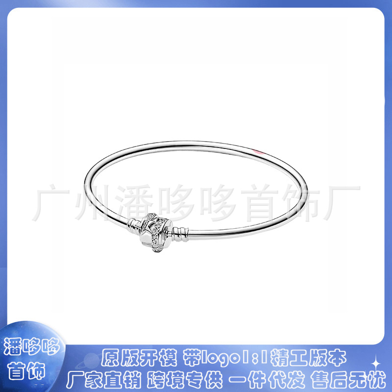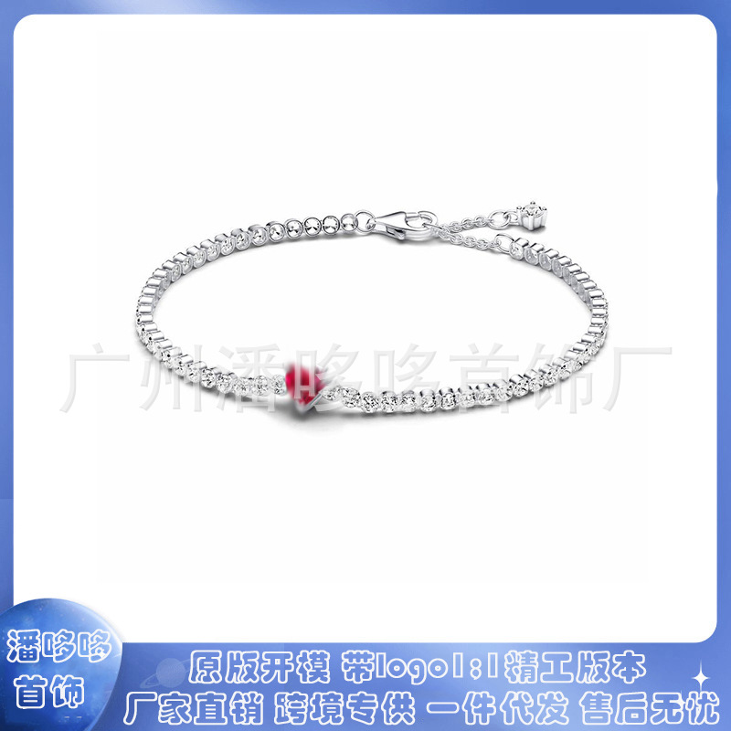 Pandora 925 White Copper Silver-Plated Bracelet Silver Beads DIY Accessories Glitter Ring Heart Tennis Bracelet