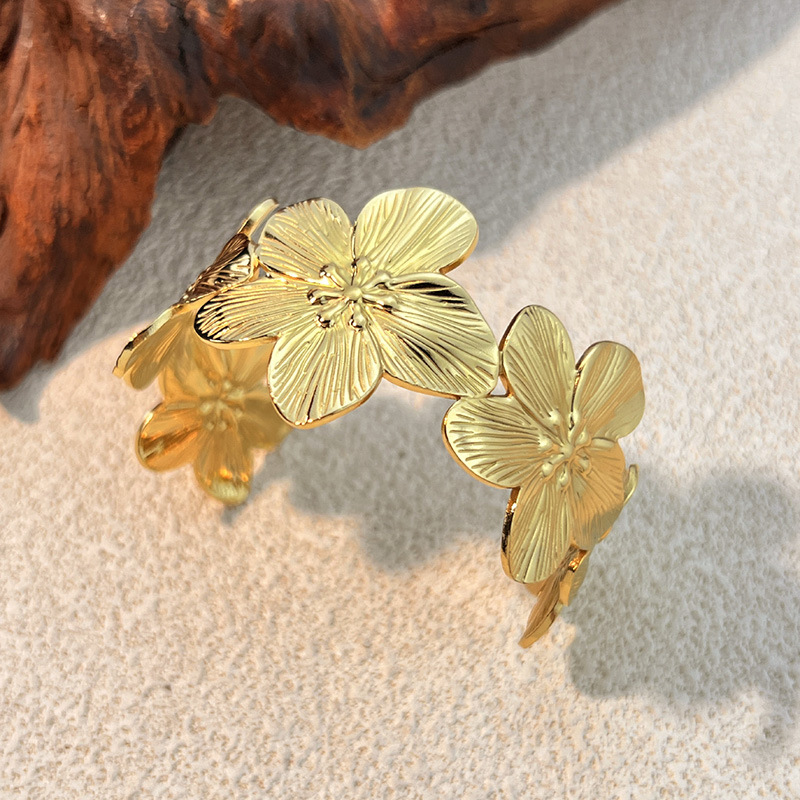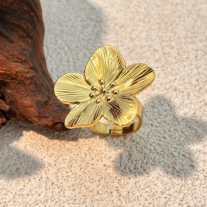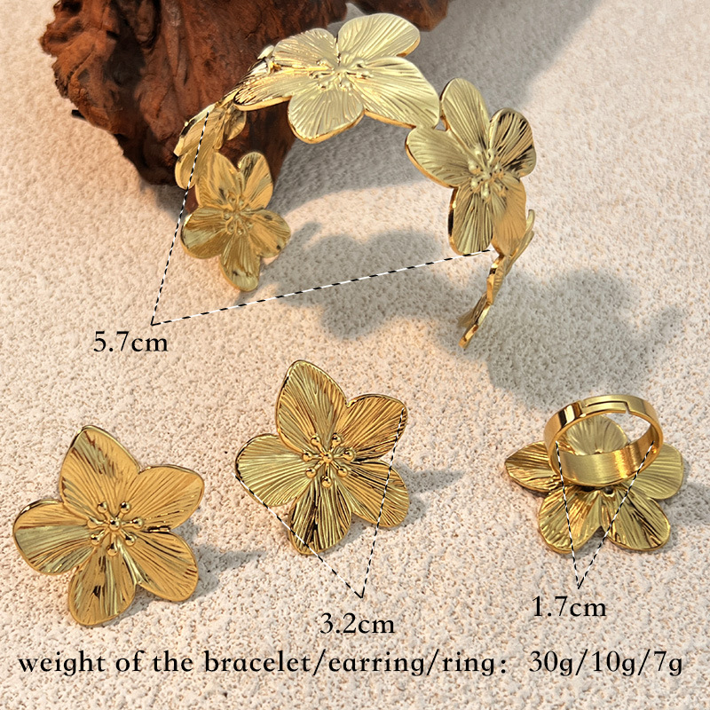 French retro palace style stainless steel jewelry suit golden flower simple all-match earrings ring bracelet wholesale