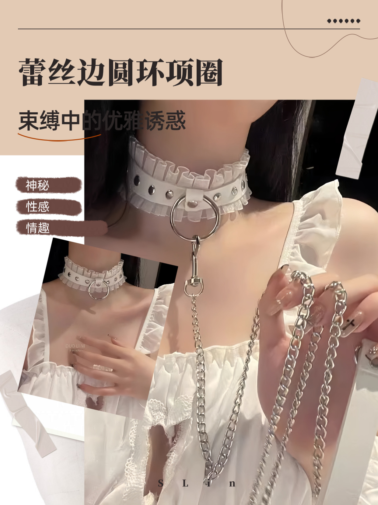 Lace Collar Female Leash Girlfriend Clavicle Chain Choker Necklace Neck Collar Neck Strap Male Sm Couple Chain
