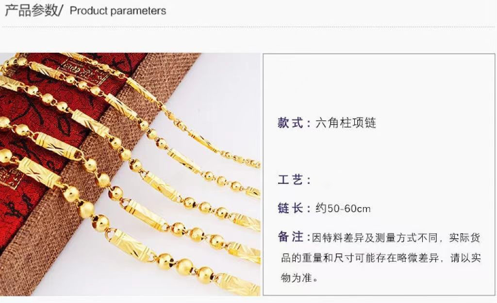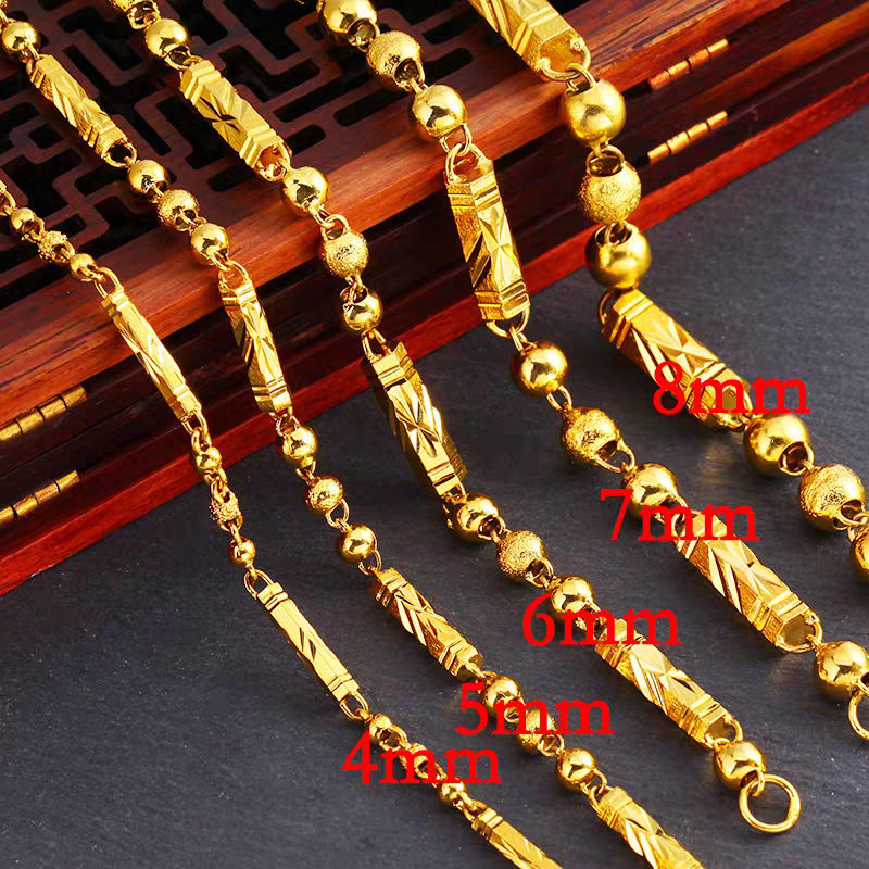 Vietnam gold necklace men's long-time non-fading yellow gold hexagonal bead necklace gold-plated artificial gold chain boss chain