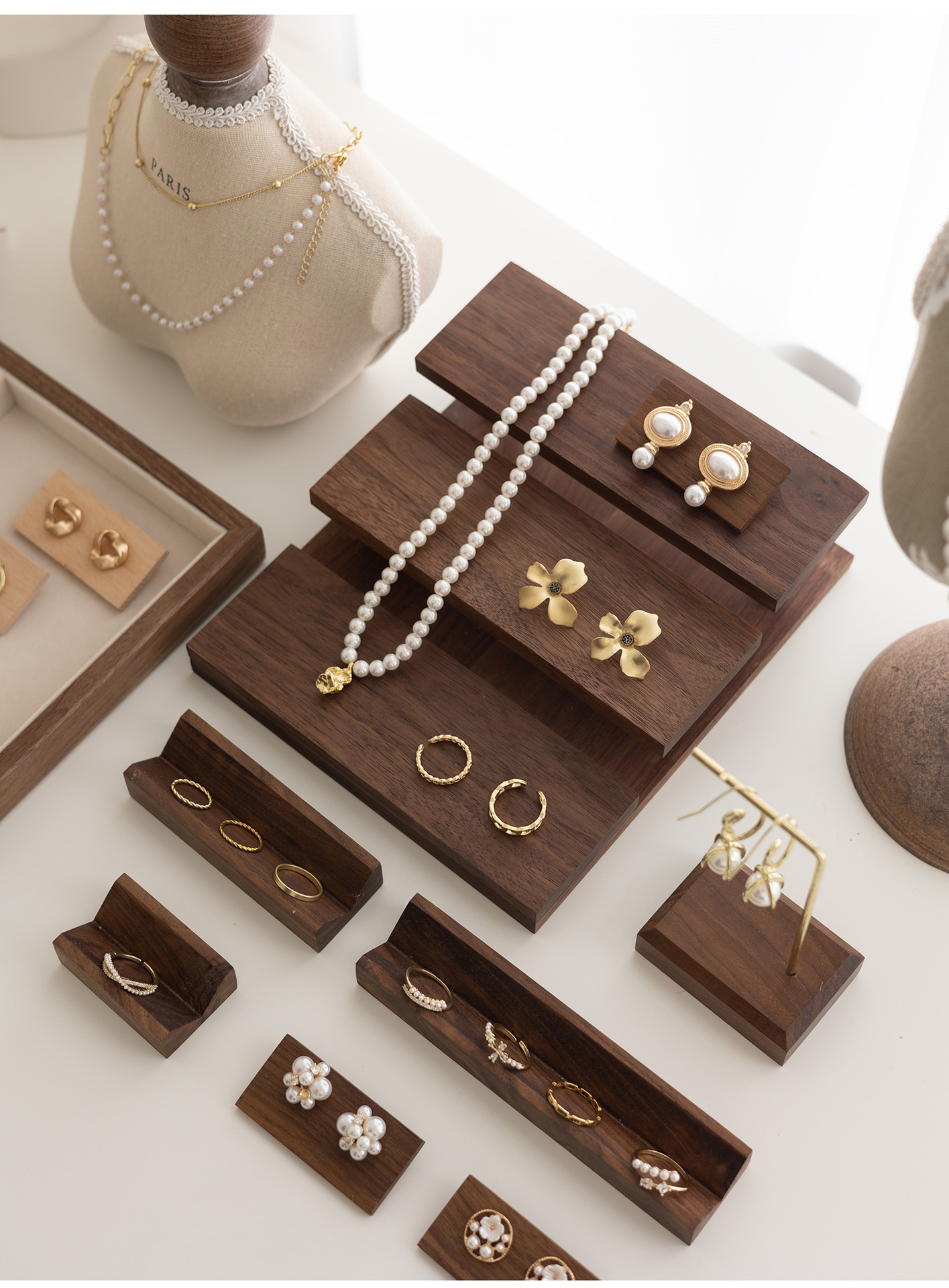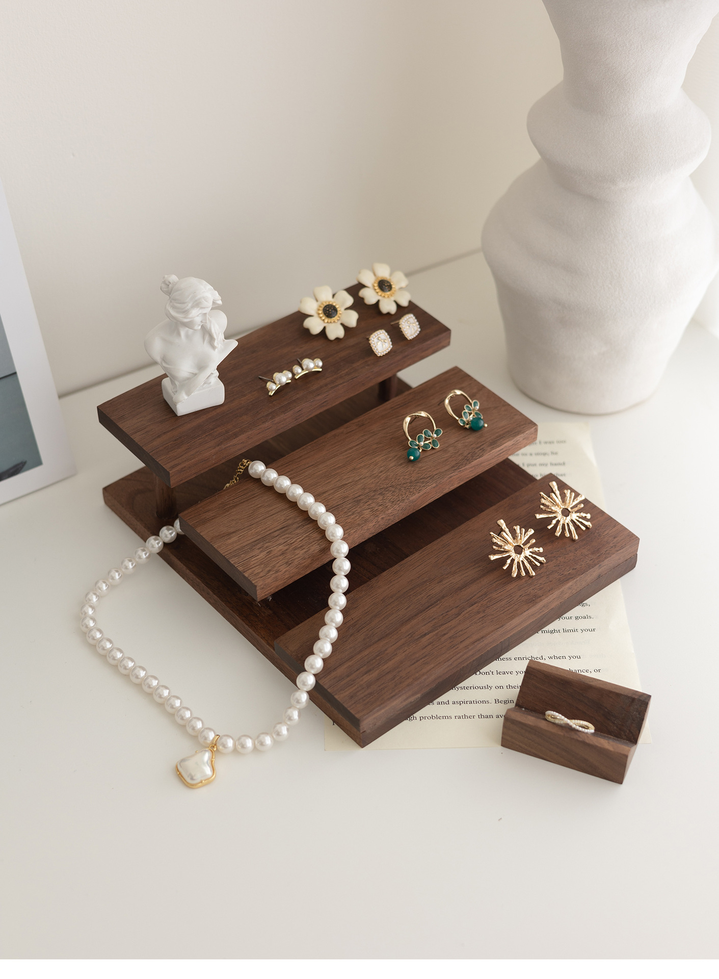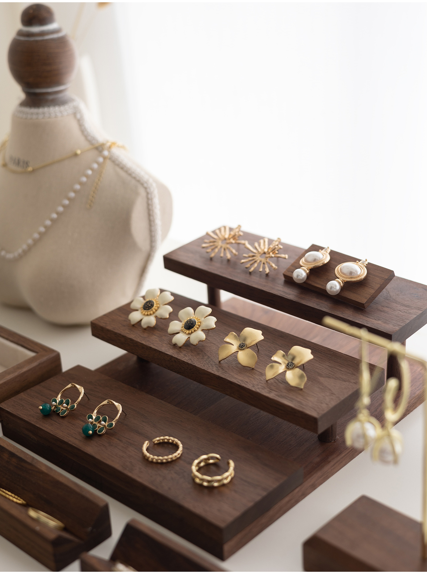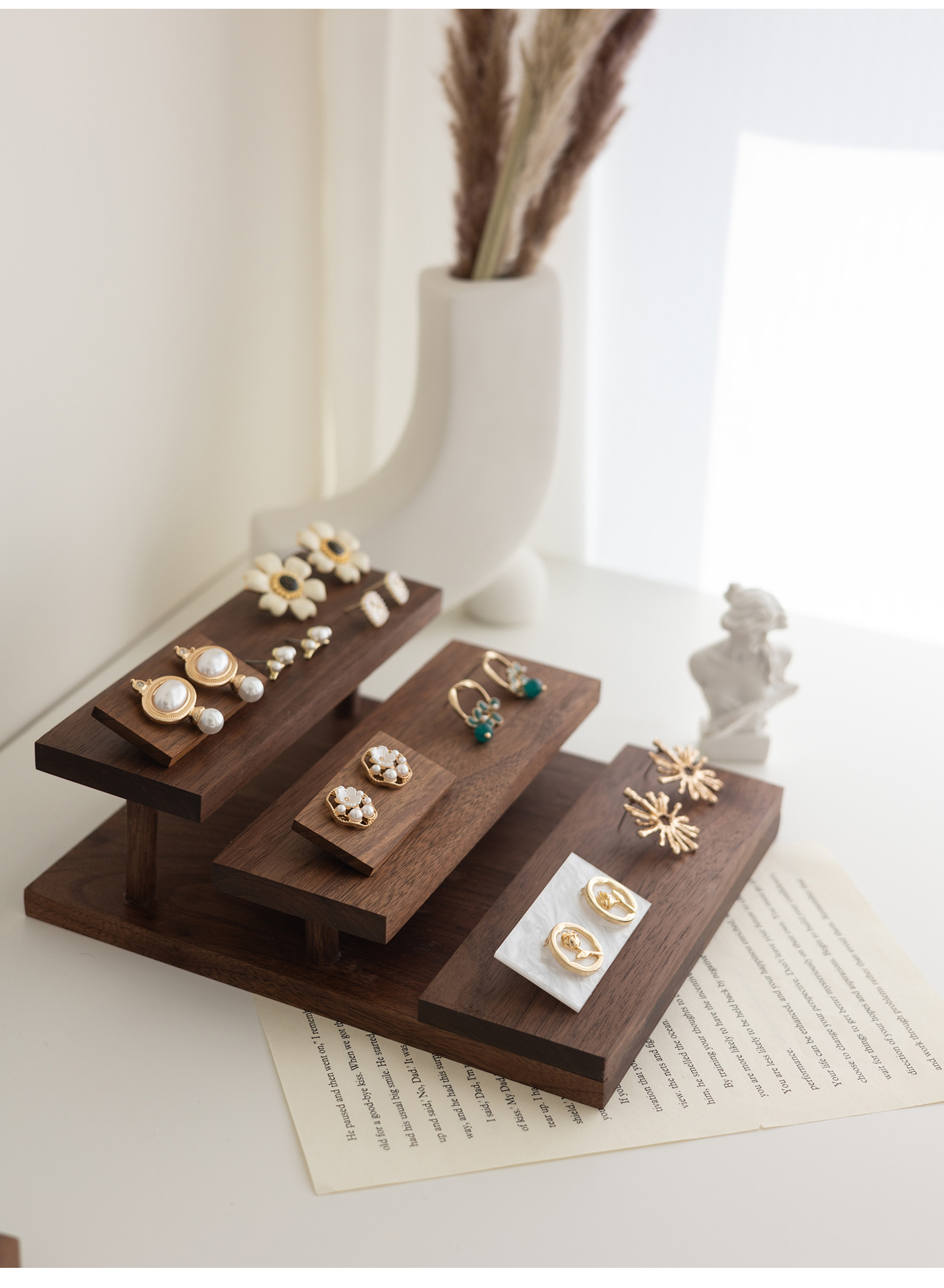 Walnut ladder multi-layer jewelry display stand jewelry display props tray Jewelry earrings necklace solid wood base