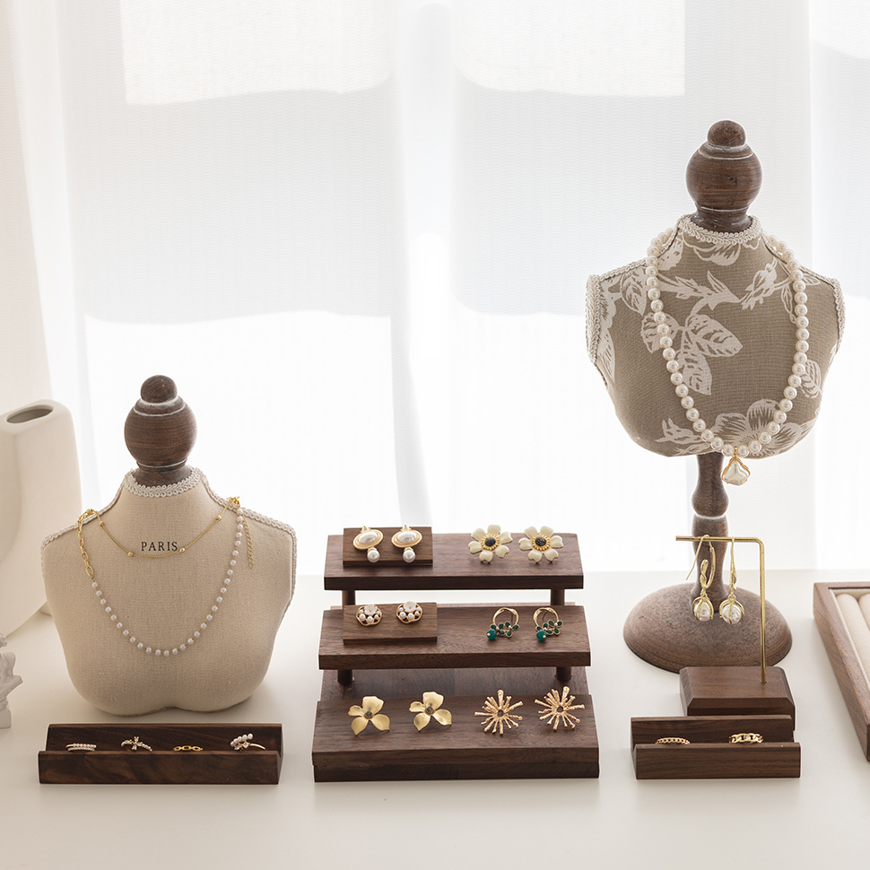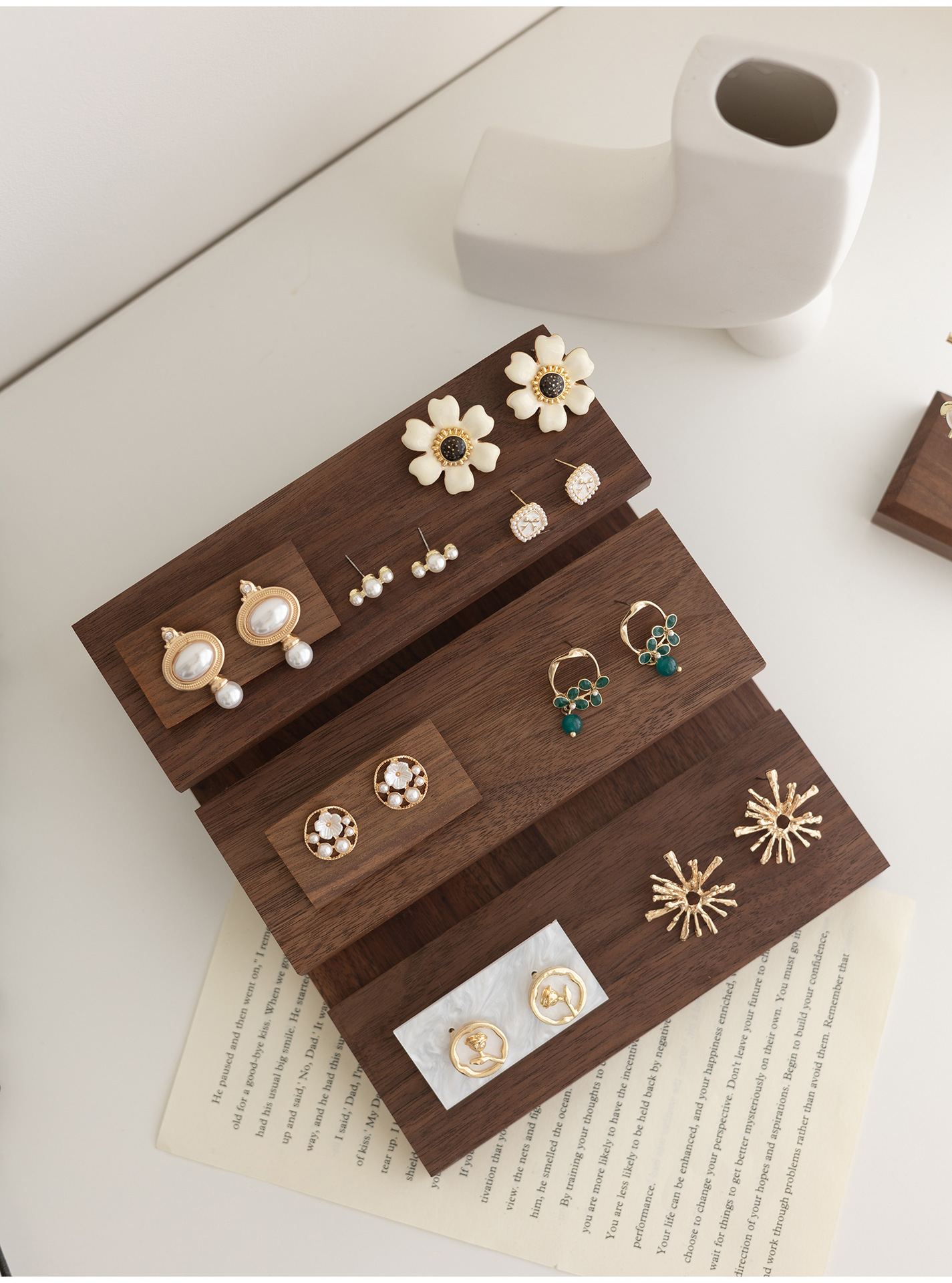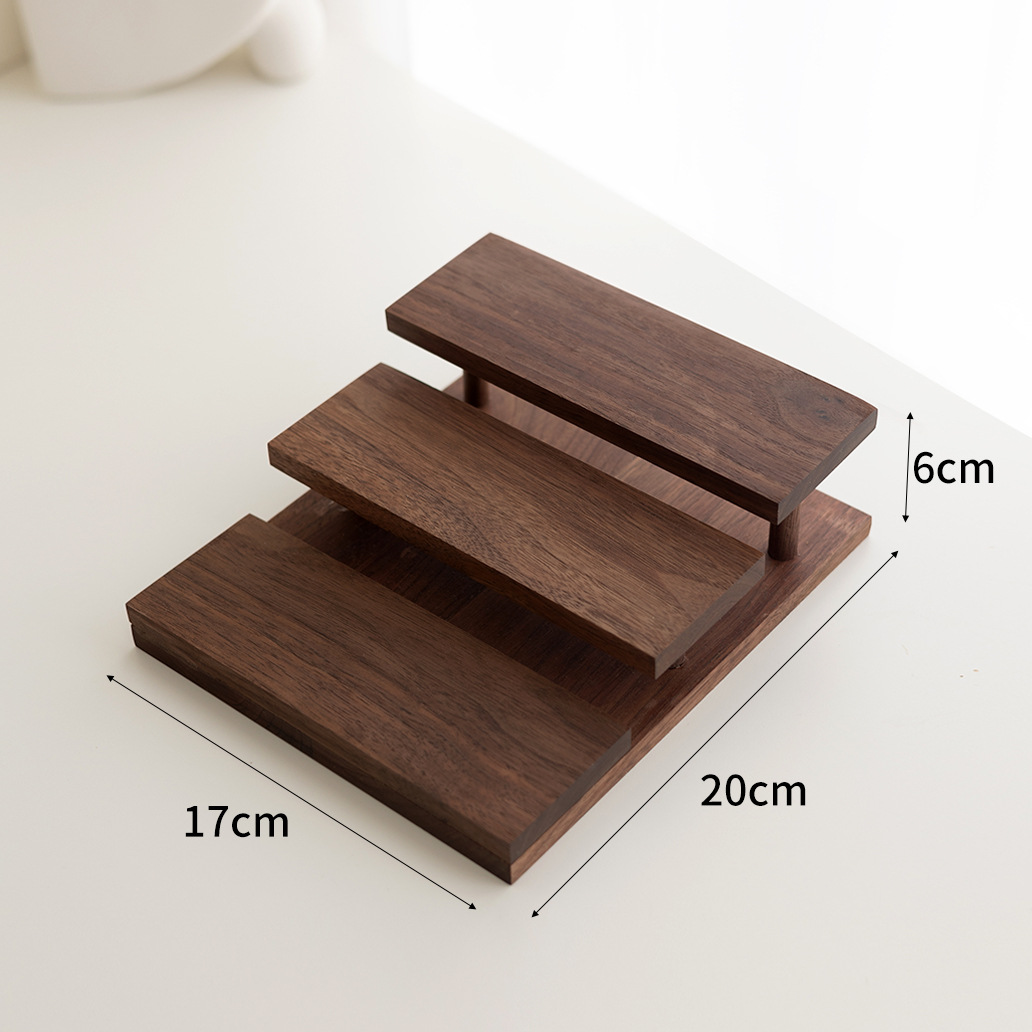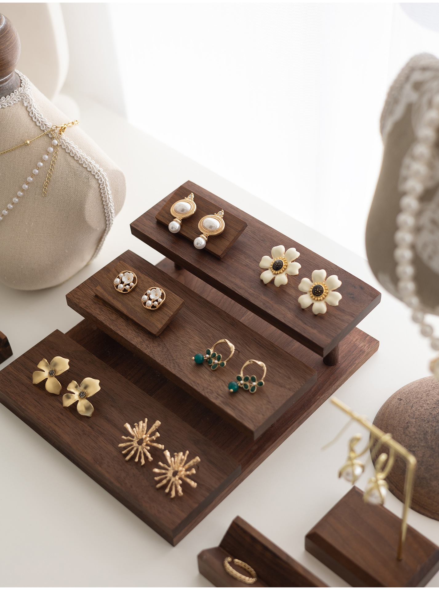 Walnut ladder multi-layer jewelry display stand jewelry display props tray Jewelry earrings necklace solid wood base