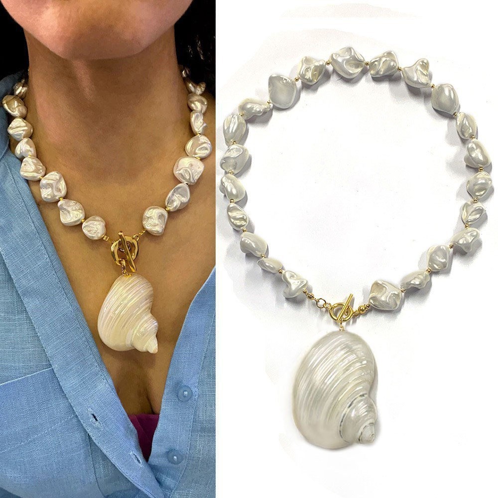 Color: Pearl conch necklace 38+10cm (imported spacer beads)