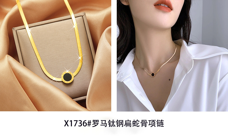 color: XL1900-4 Roman full body titanium steel flat snake bone necklace