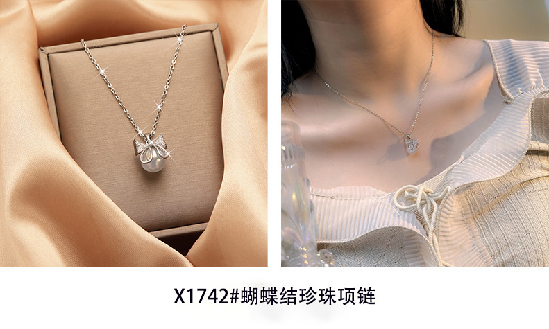 color: XL1900-6 Bow Pearl Necklace