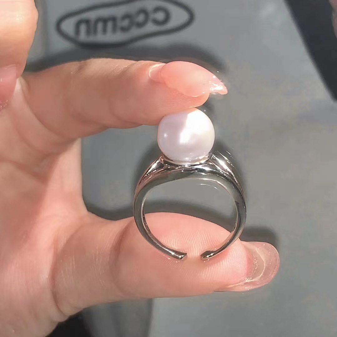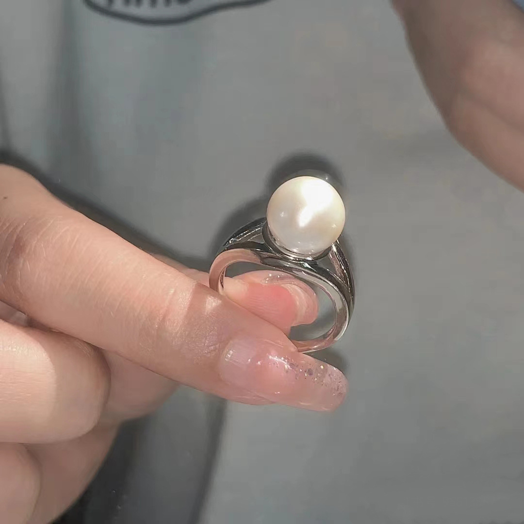 Pearl Ring female niche design unique open adjustable ring light luxury high-grade index finger ring
