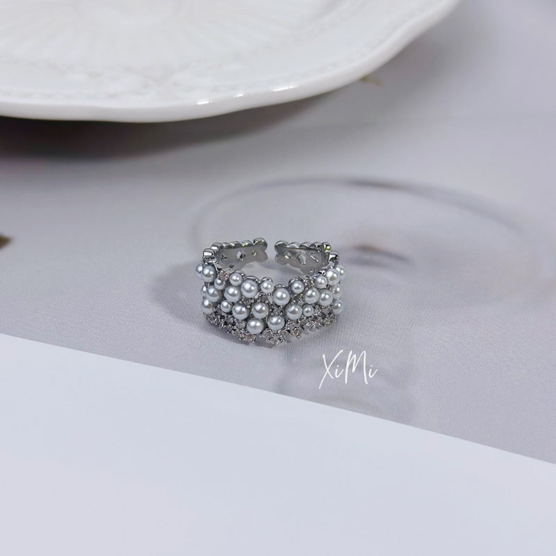 Zircon Pearl Ring Women's Niche High-end Light Luxury Vintage Explosive Internet Celebrity Zircon French Fashion Personalized Ins Finger