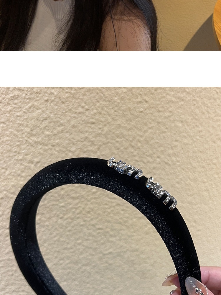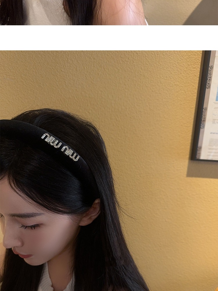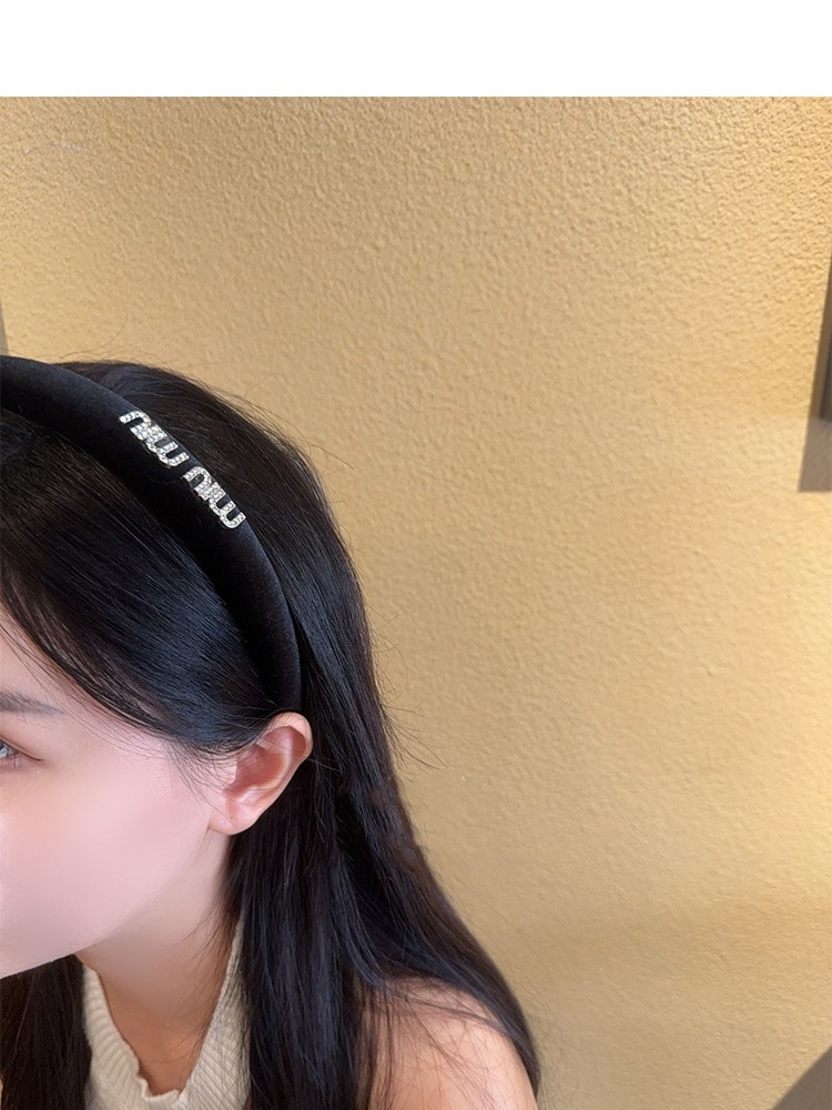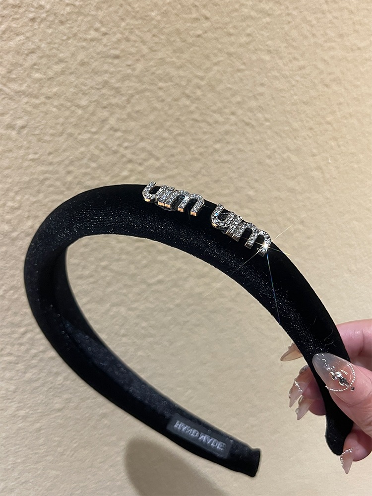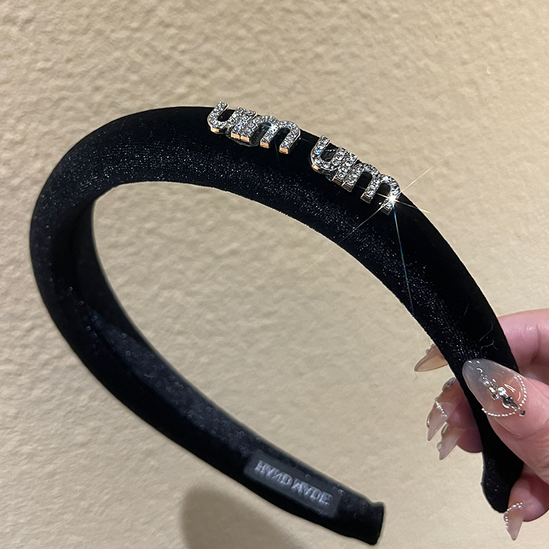 Autumn and Winter New Velvet Solid Color Samuel Letter Flash Diamond Headband Fashion Cute Headband Daily All-match Niche Headwear Women