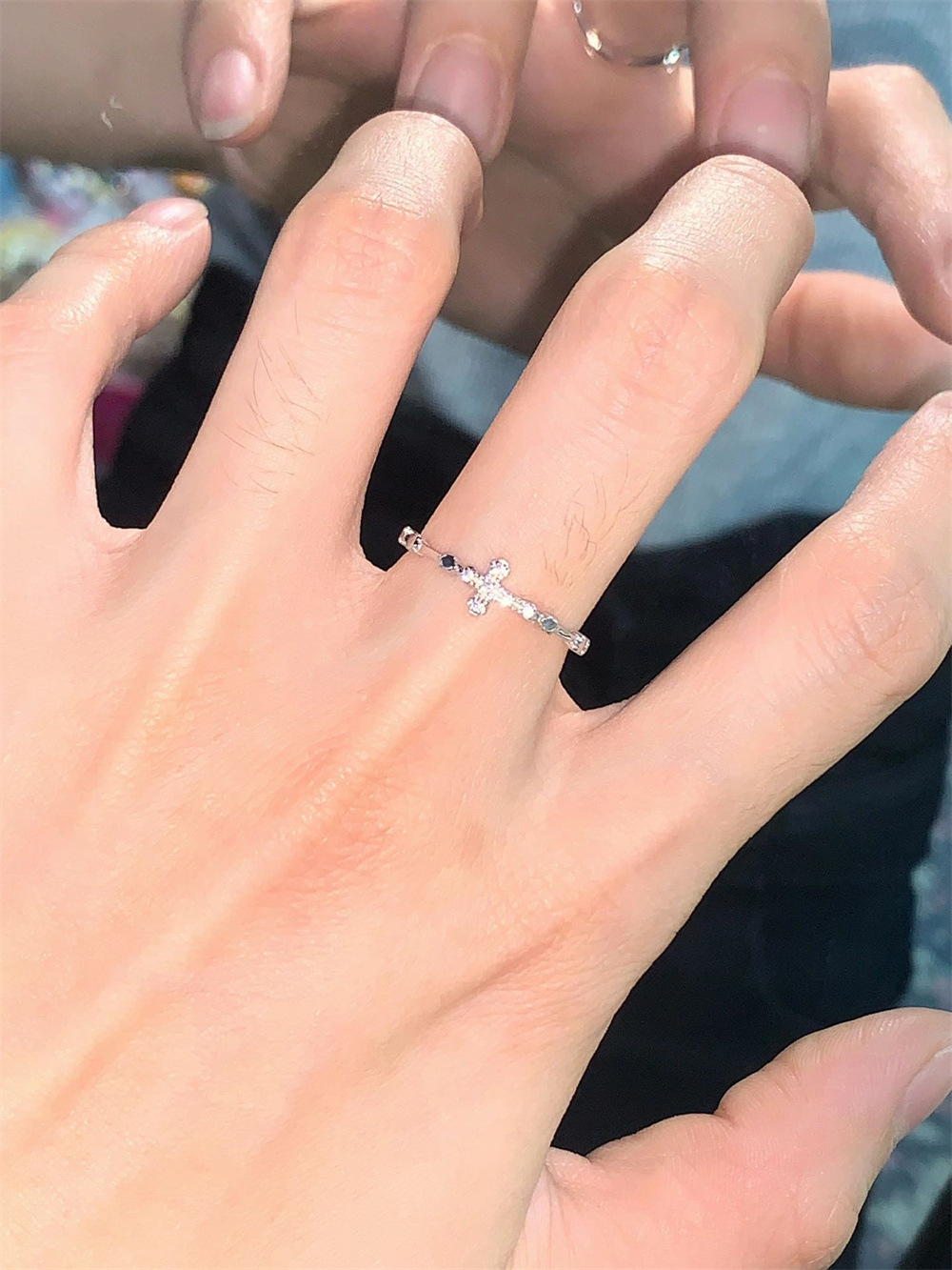 Rising Sun Cross Ring with Diamond Opening High-end Sense Design Niche Light Luxury Ins Style Ring Food Finger Ring