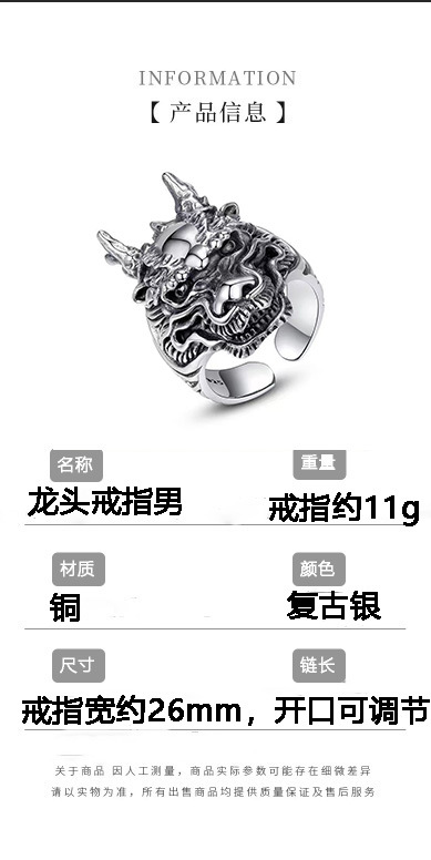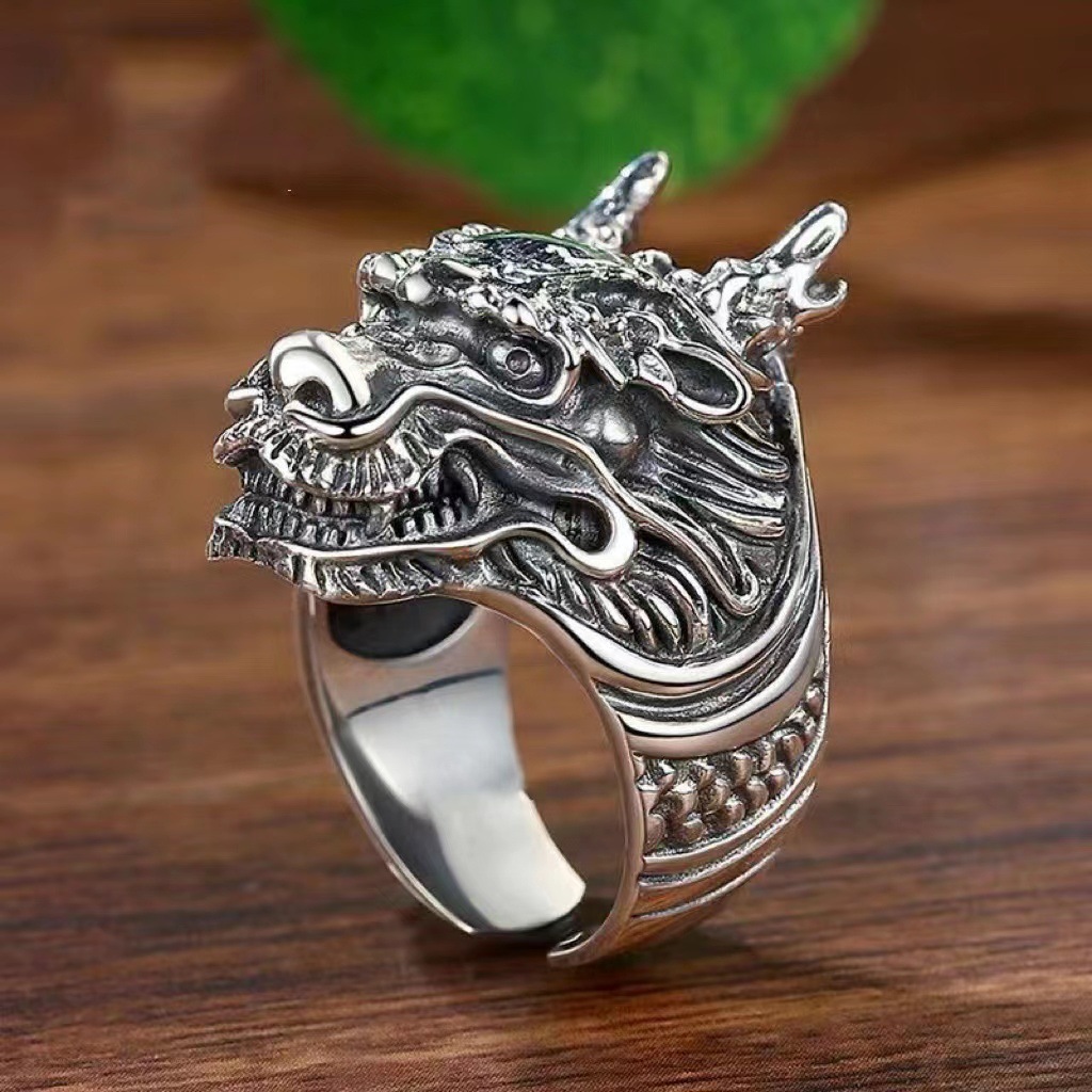 Chinese style dragon ring, Chinese style, Zodiac dragon, old craft, personalized open ring