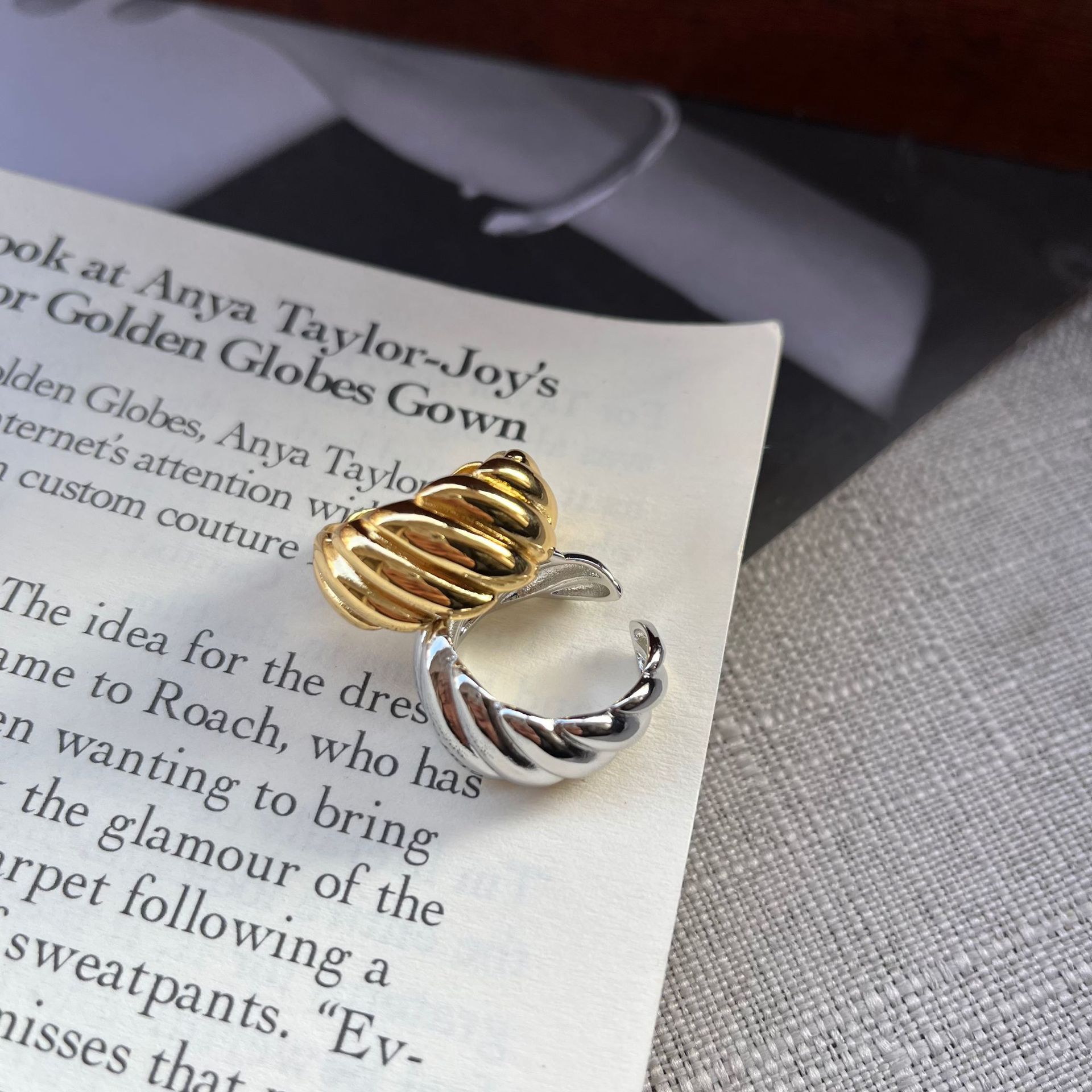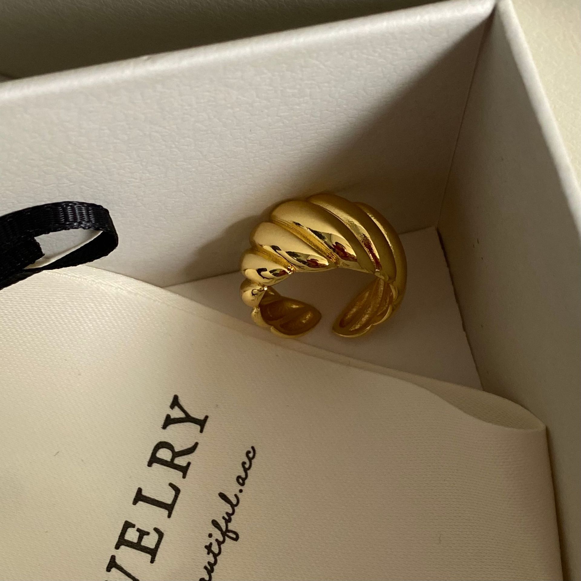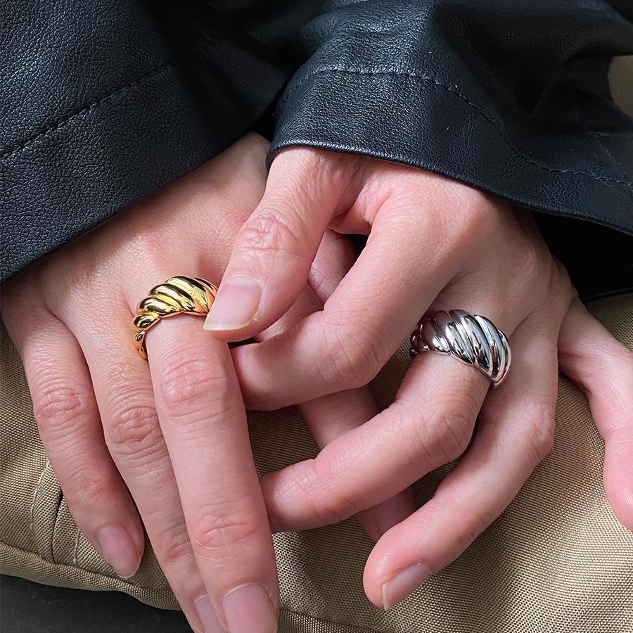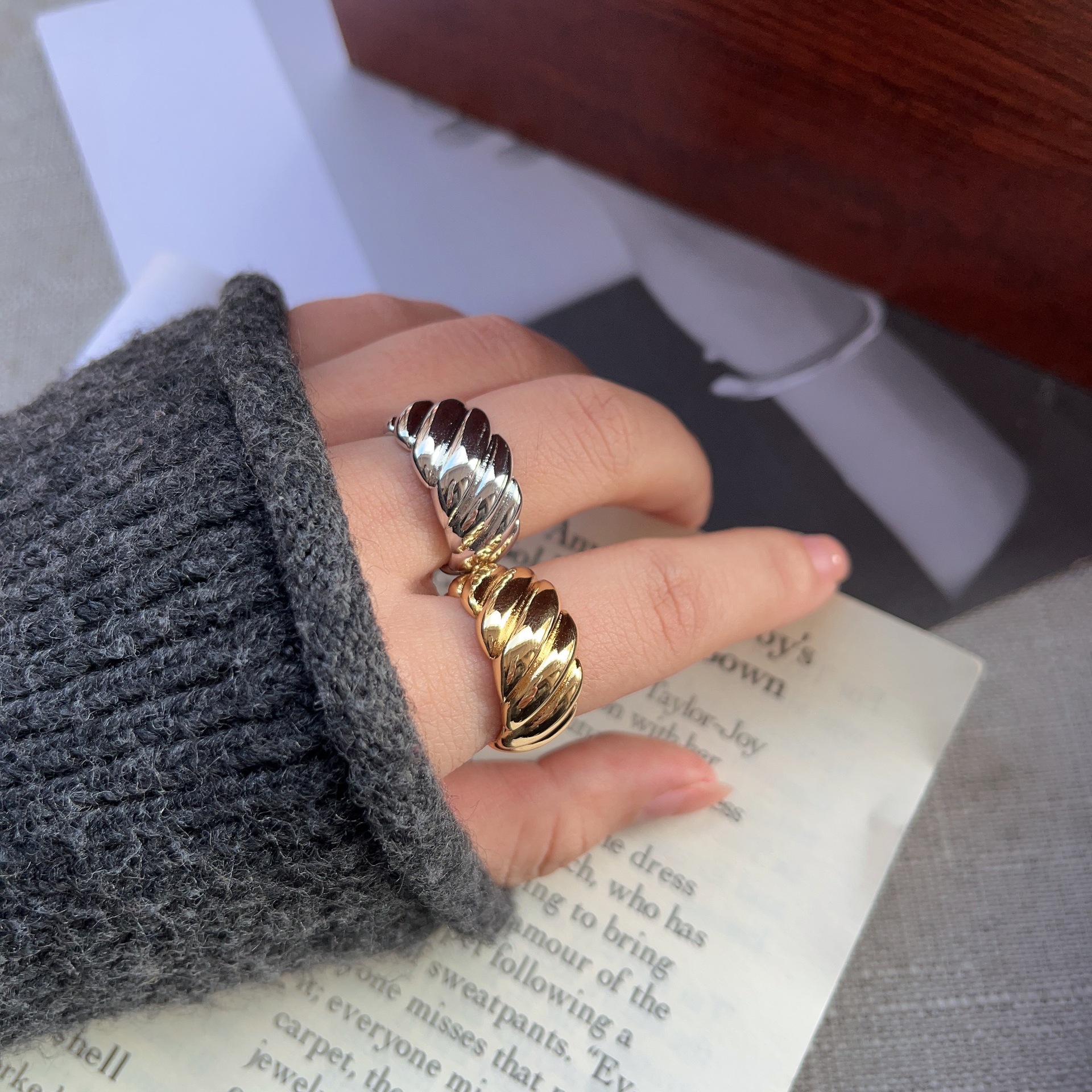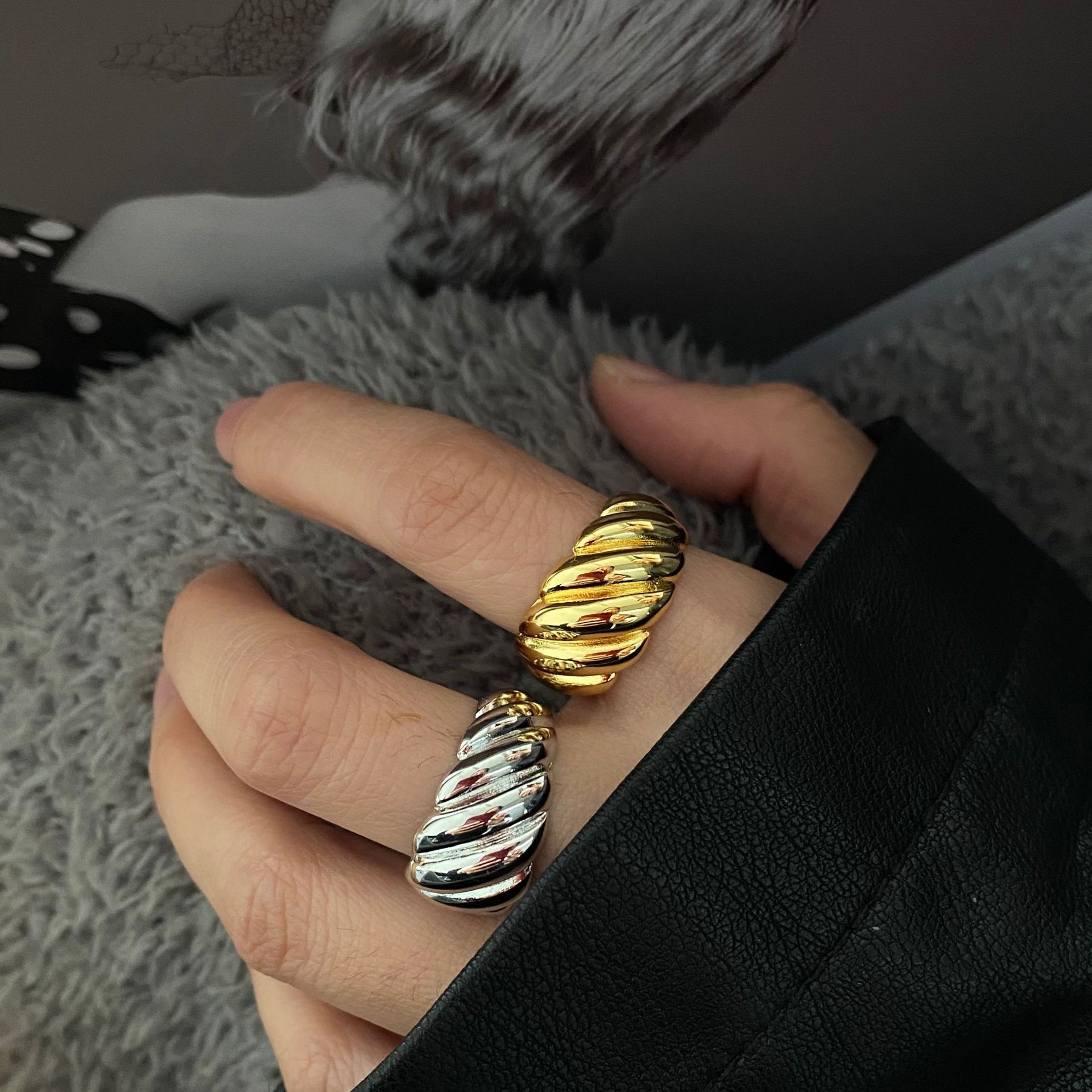 Brass Gold plating twill personality design sense niche metal European and American ring cross-border ins fashion ring female