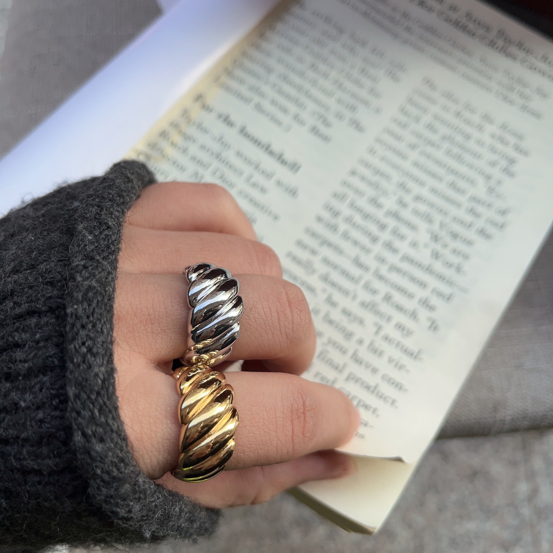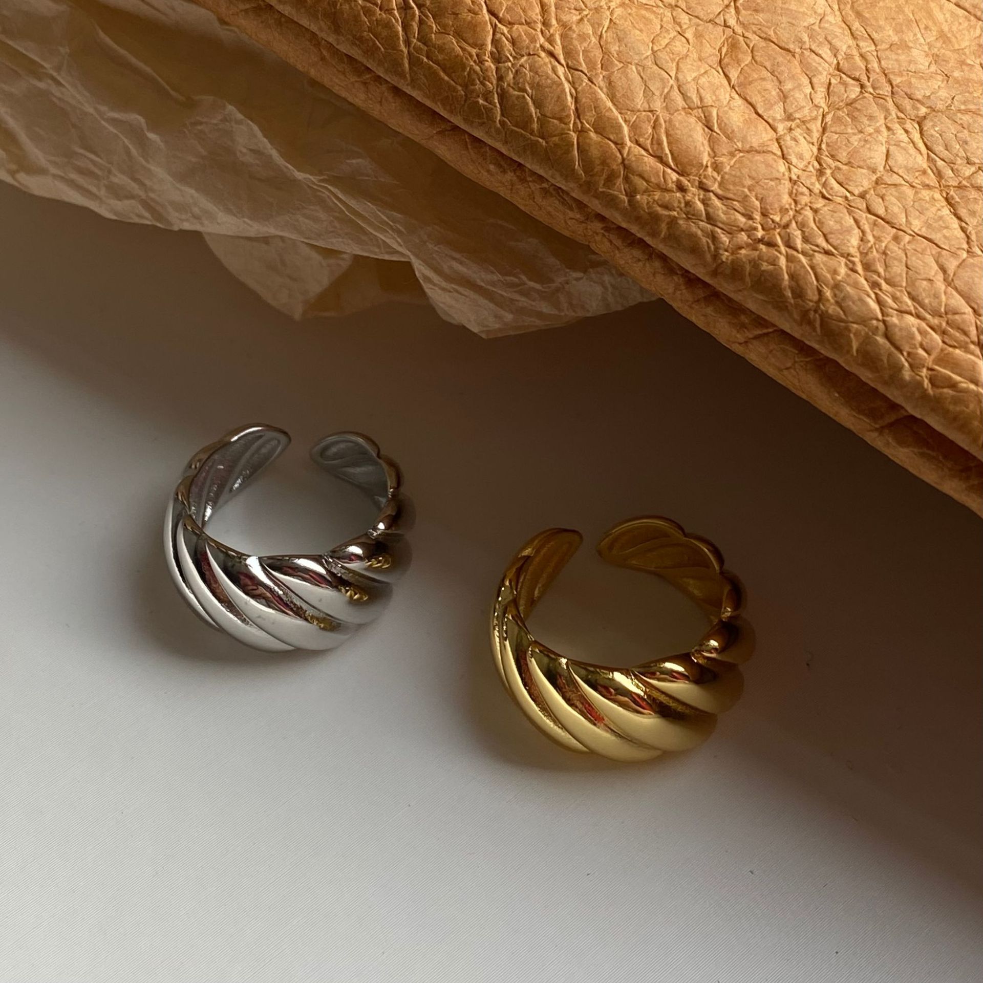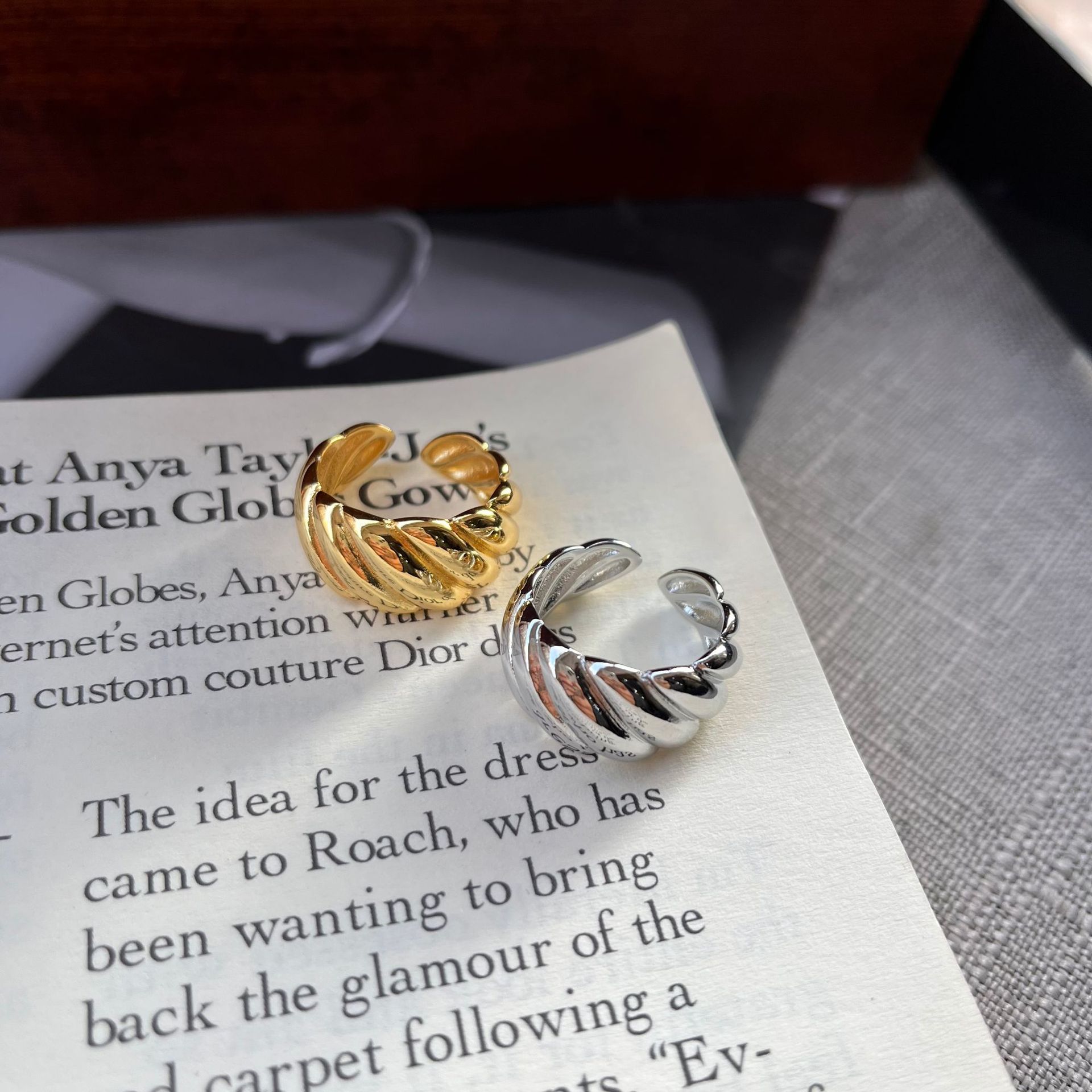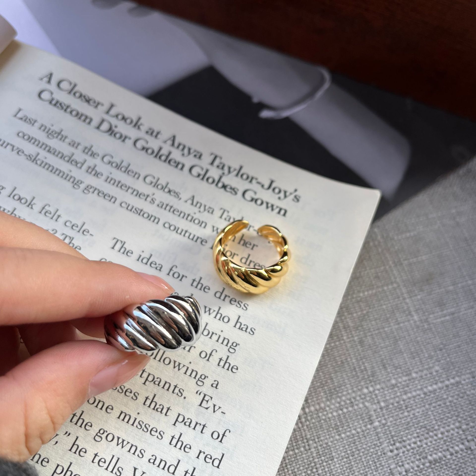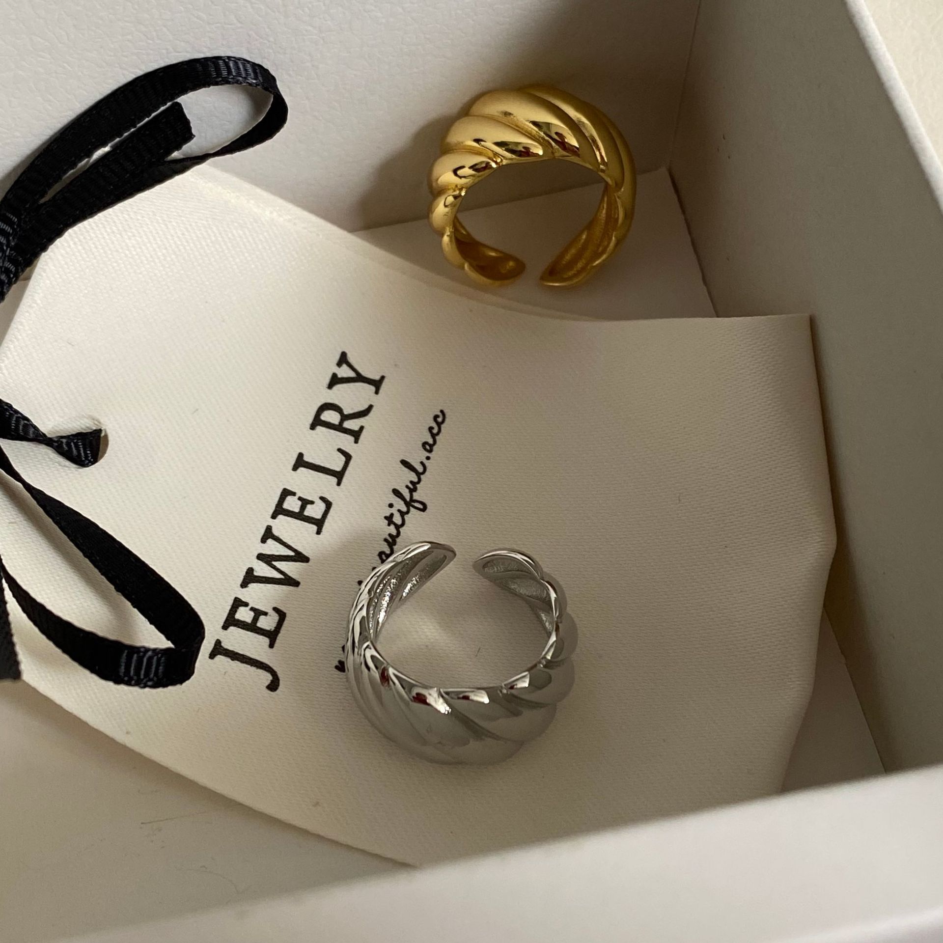 Brass Gold plating twill personality design sense niche metal European and American ring cross-border ins fashion ring female