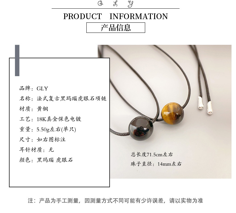 French New Fashion rope adjustable simple beaded black agate Tiger stone pendant personality retro temperament necklace