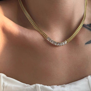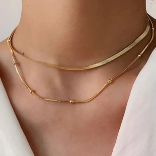 European and American style new fashion double-layer flat snake chain stacked stainless steel collar necklace gold-plated necklace women's suit