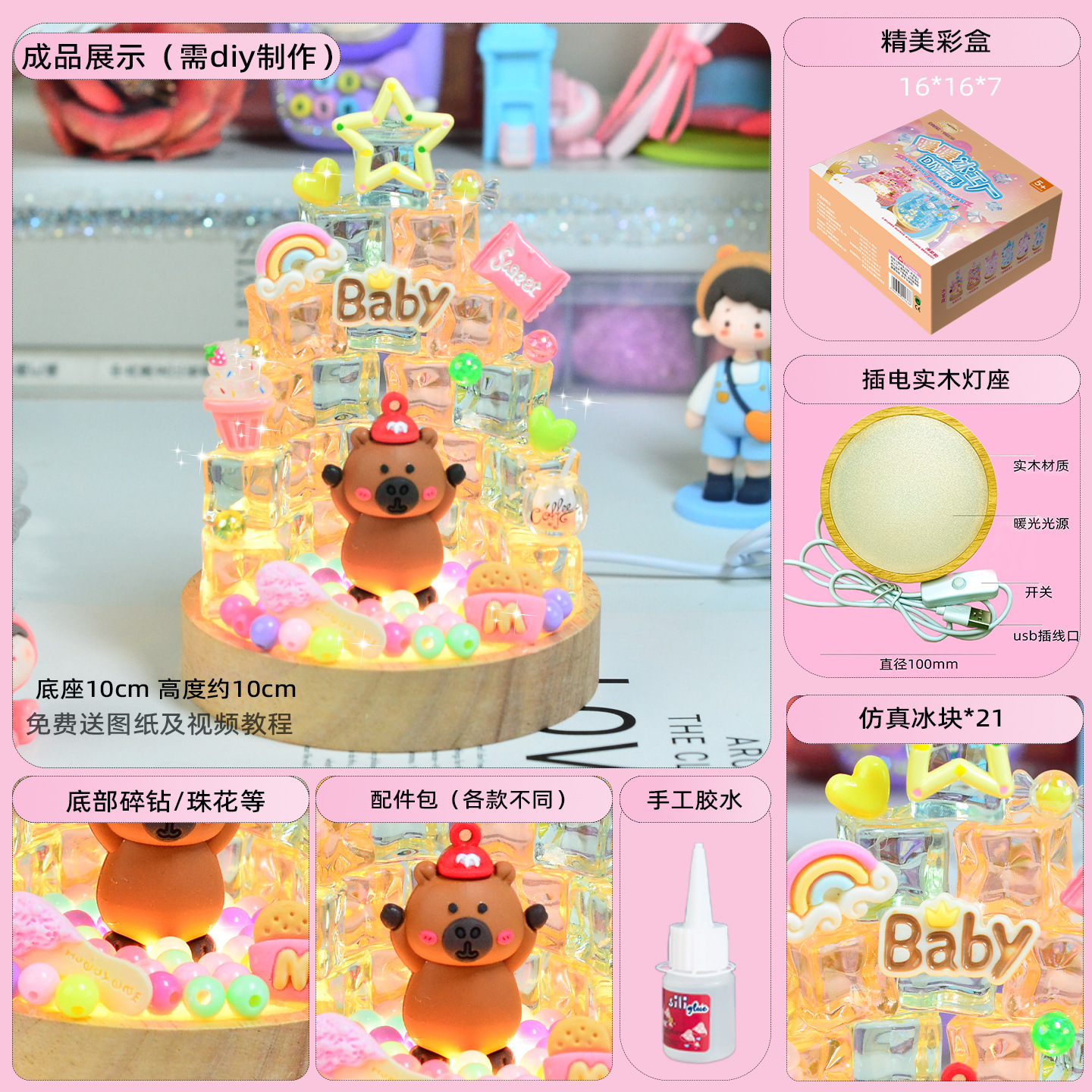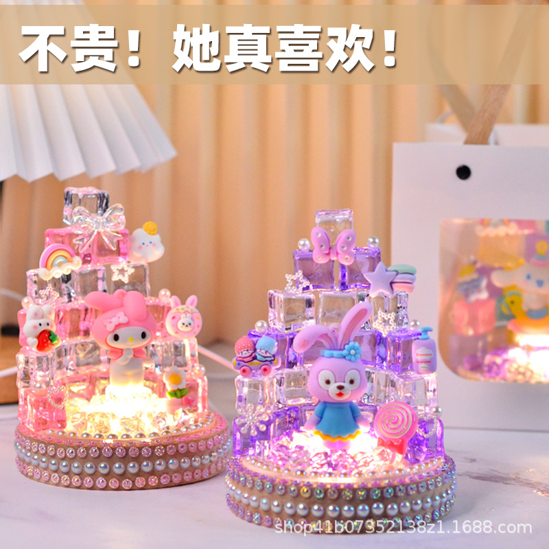 Kids Ice Crystal Castle Nightlight Creative Gift Wholesale Luminous Children Handmade DIY Blind Box Toys