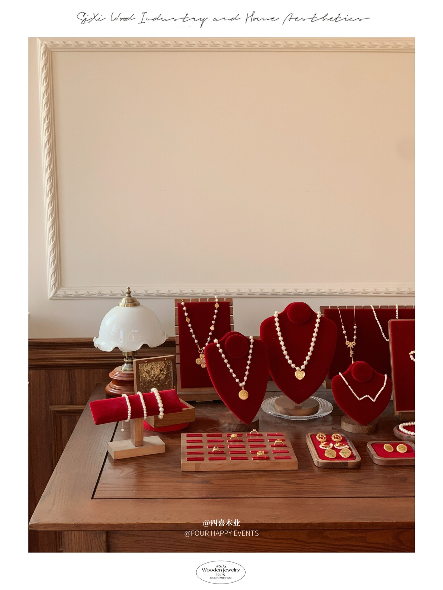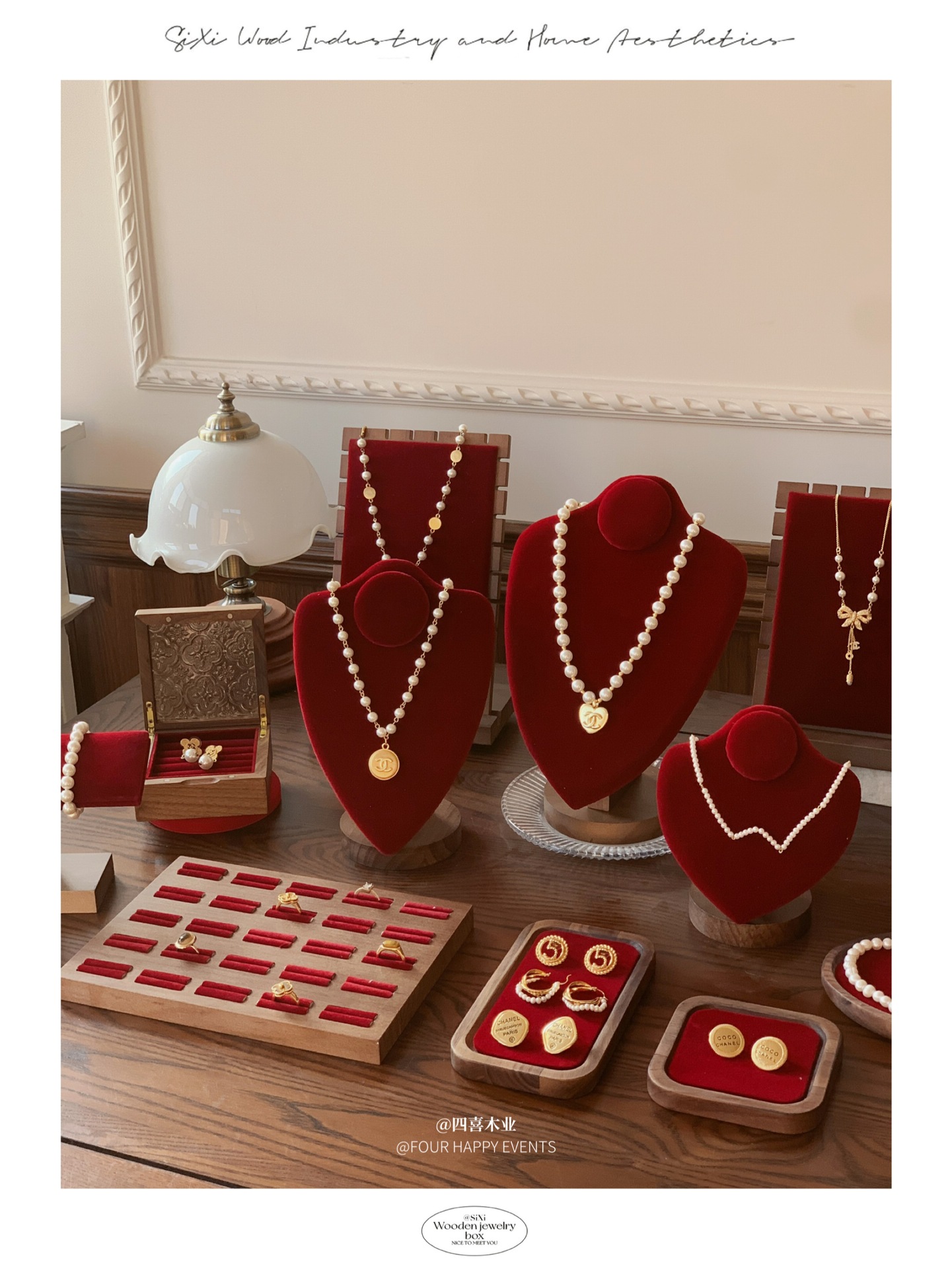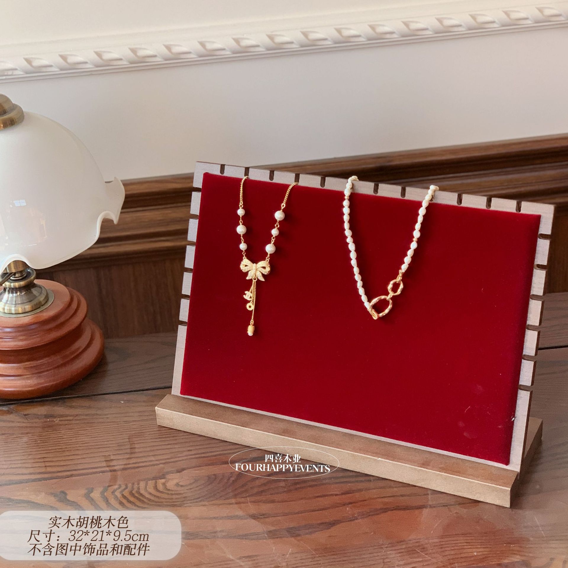 Color: Walnut Wine Red Velvet Necklace Rack Large