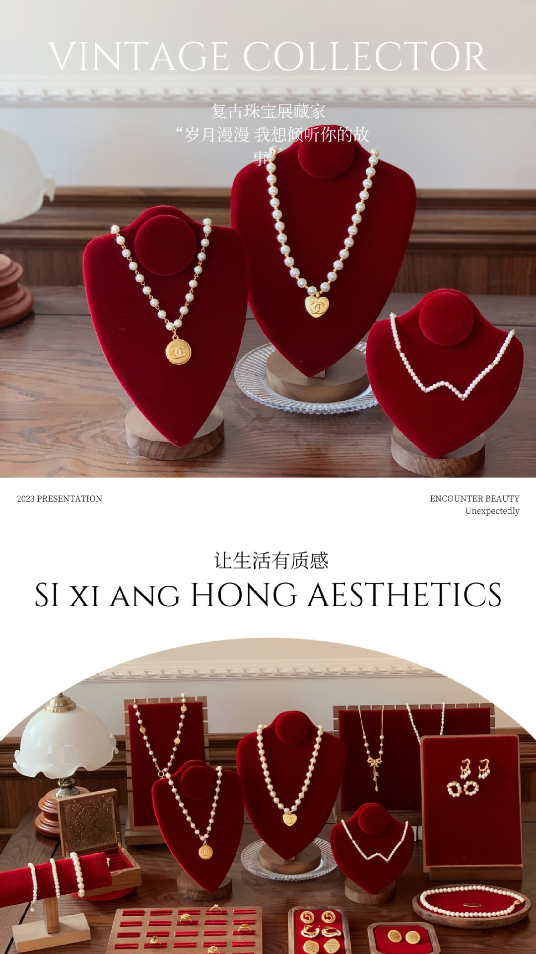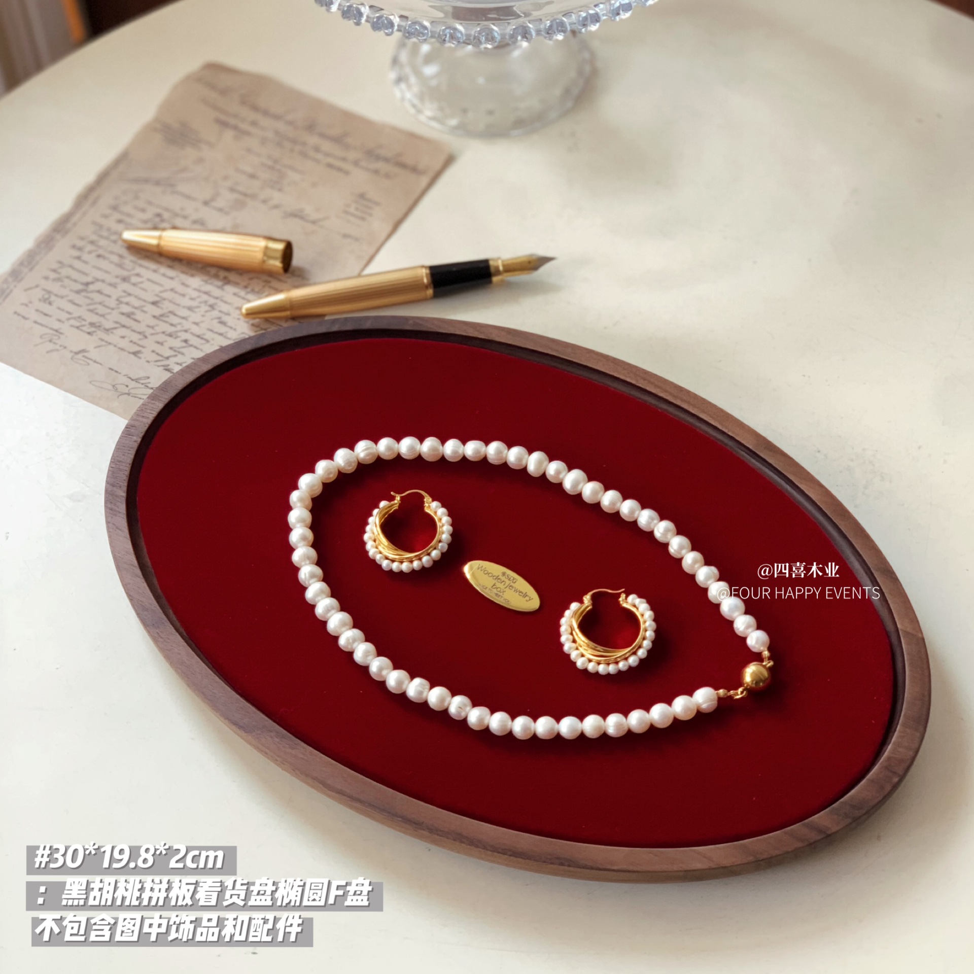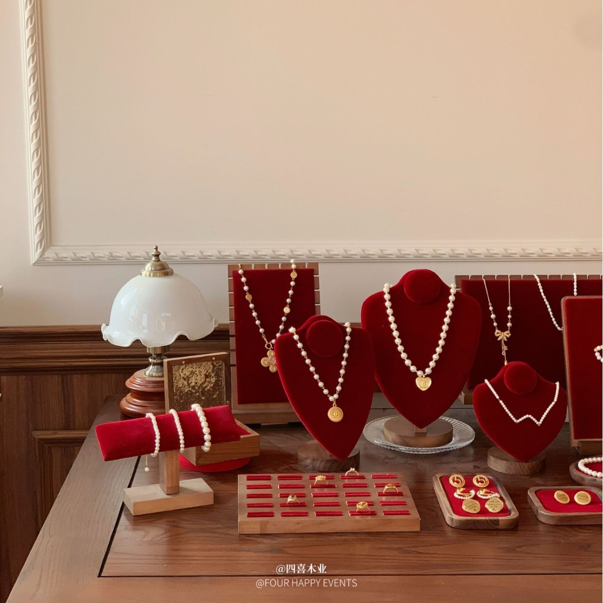 Color: Walnut Wine Red Velvet Necklace Rack Large
