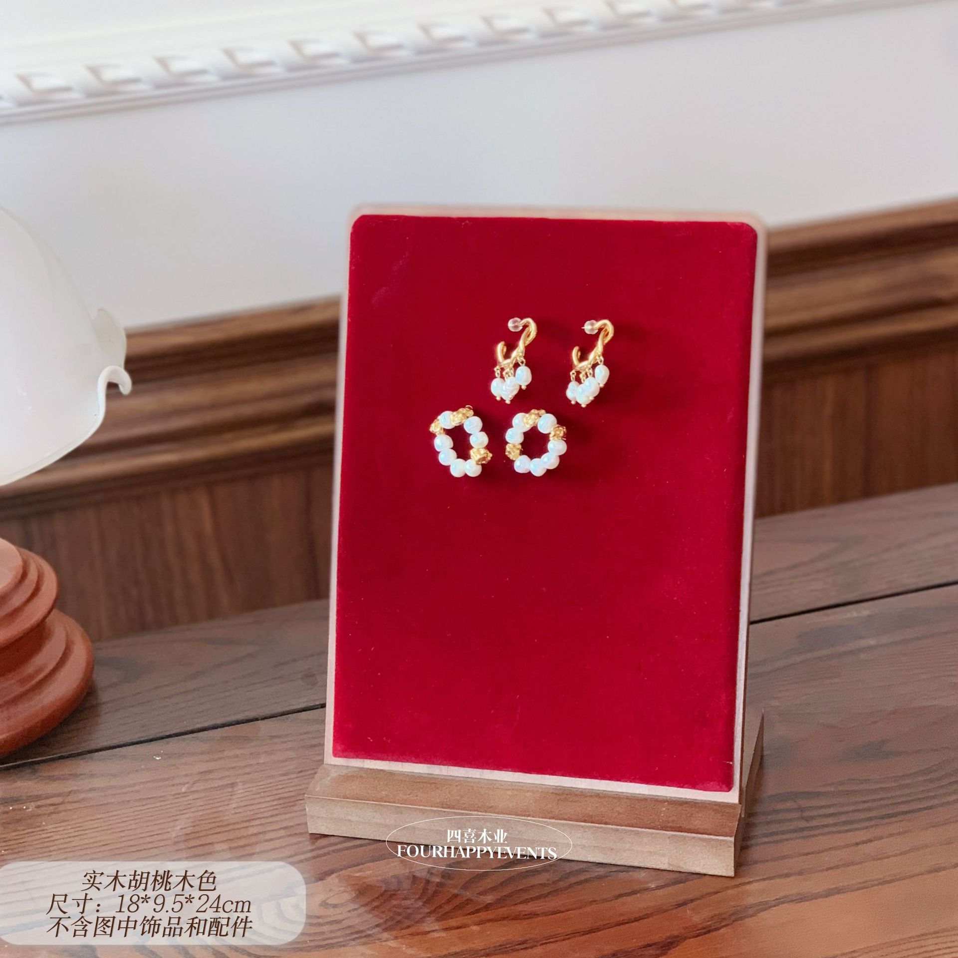 Color: Walnut Wine Red Velvet Earring Rack Large