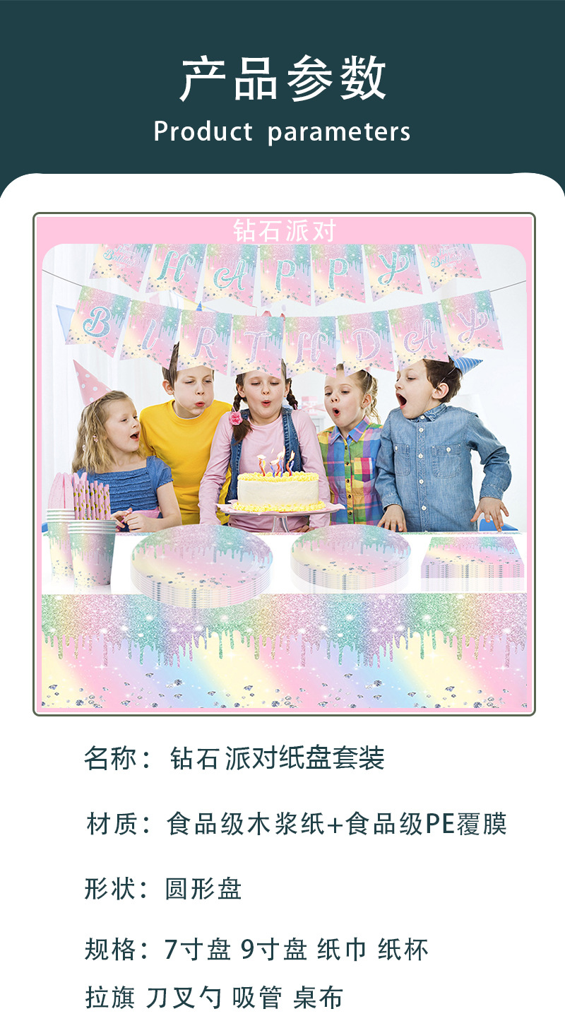 Macaron Diamond Birthday Party Tableware Decoration Paper Plates Cups Napkins Tablecloth Set Supplies Birthday Party Decoration