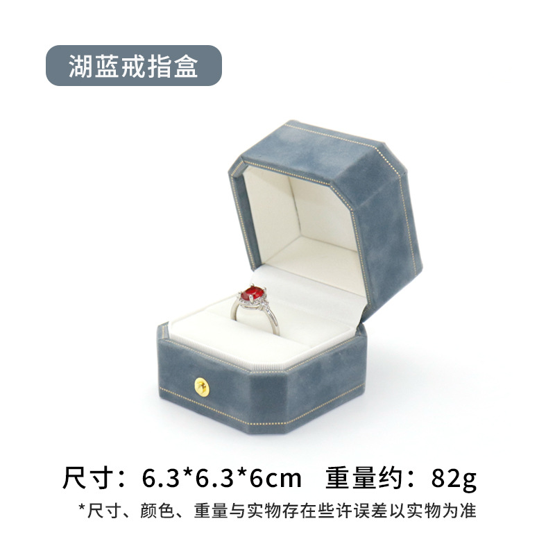 Specification model: Lake blue ring box; velvet octagonal lace box