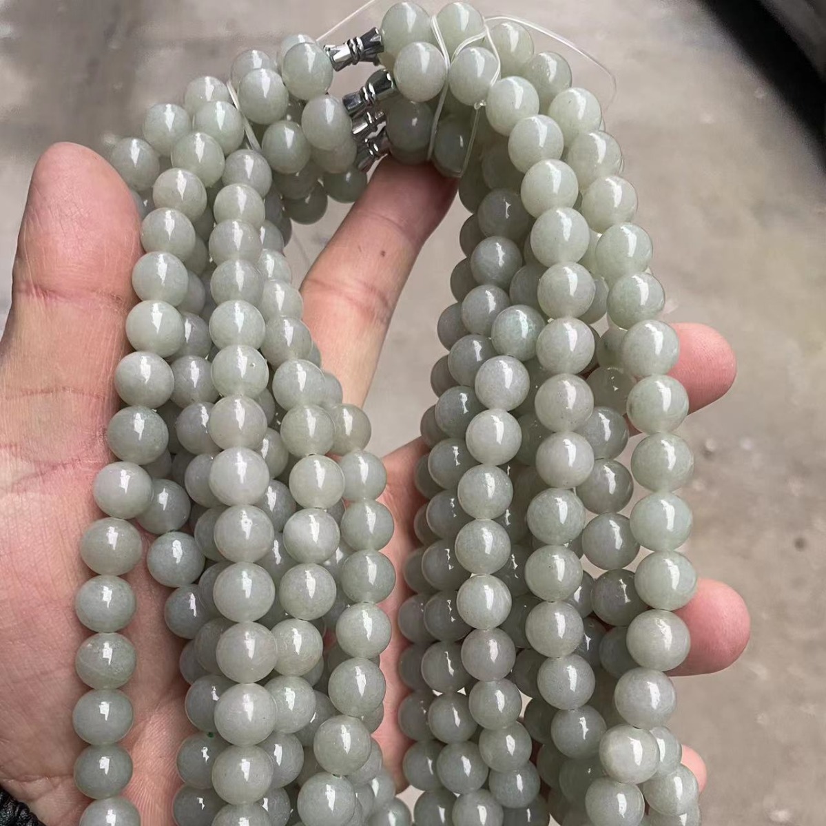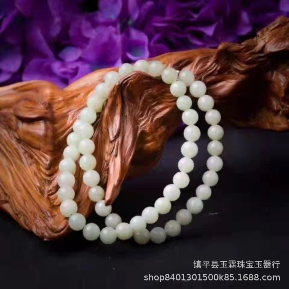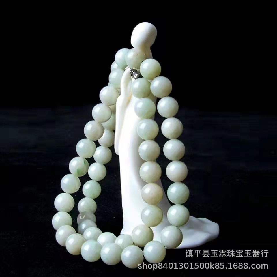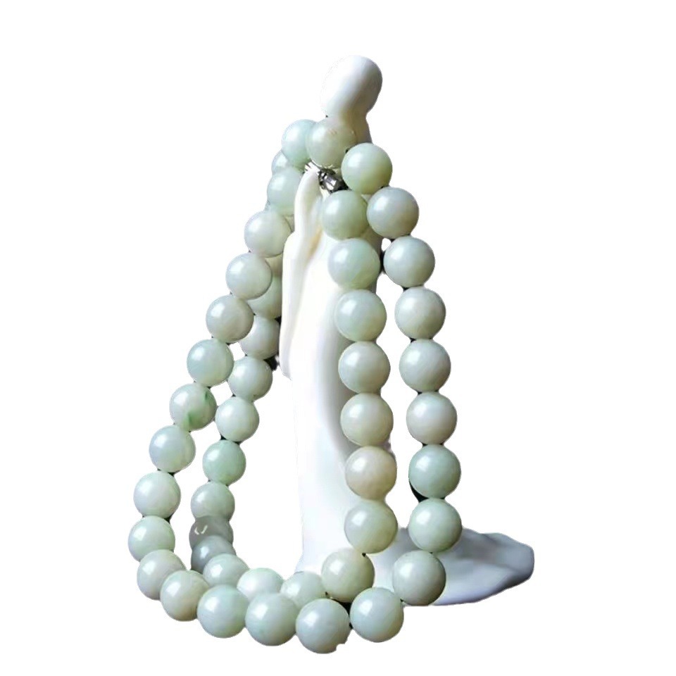 Inner Mongolia jade necklace glutinous bean green light green jade mother chain clavicle chain Women's cylindrical sweater chain gift