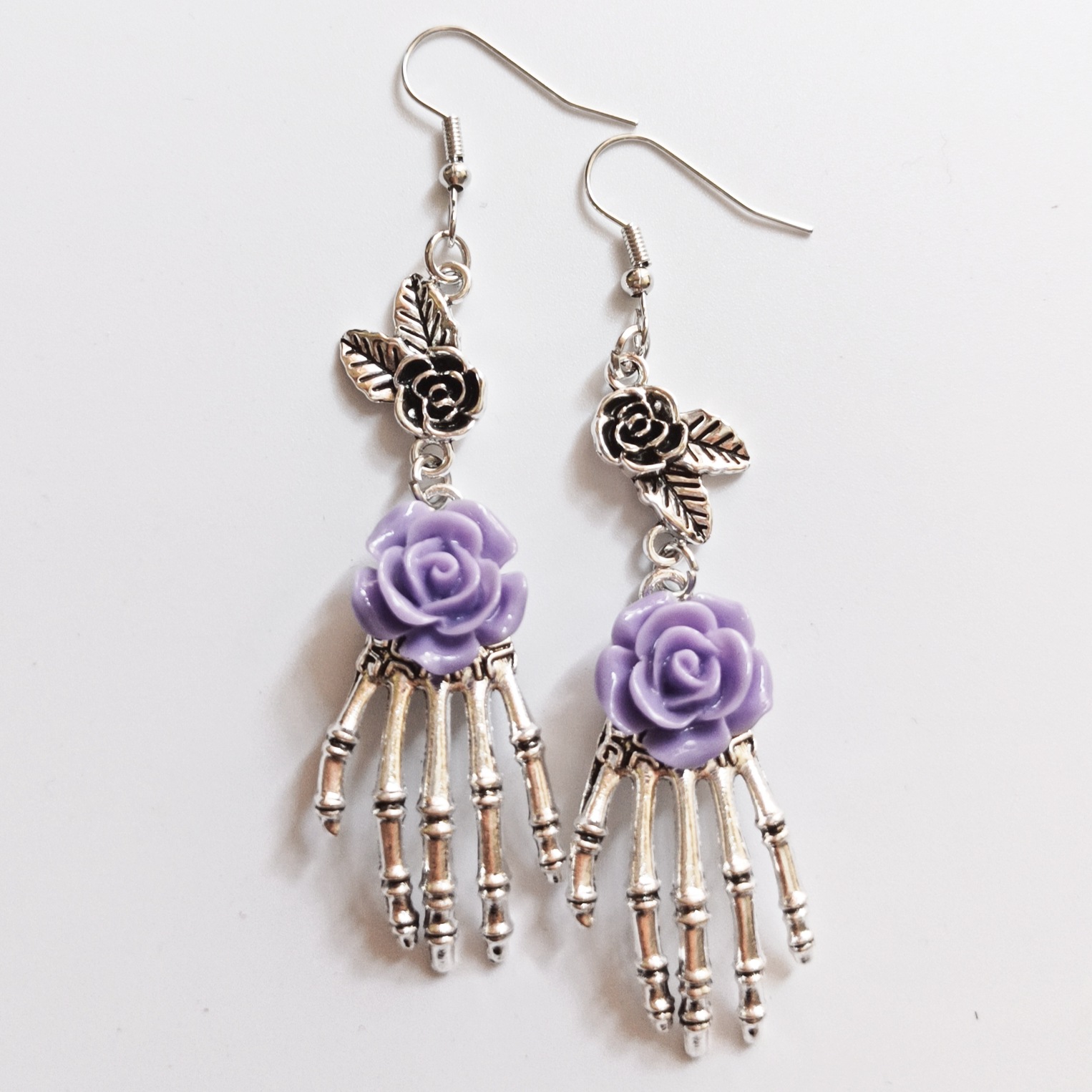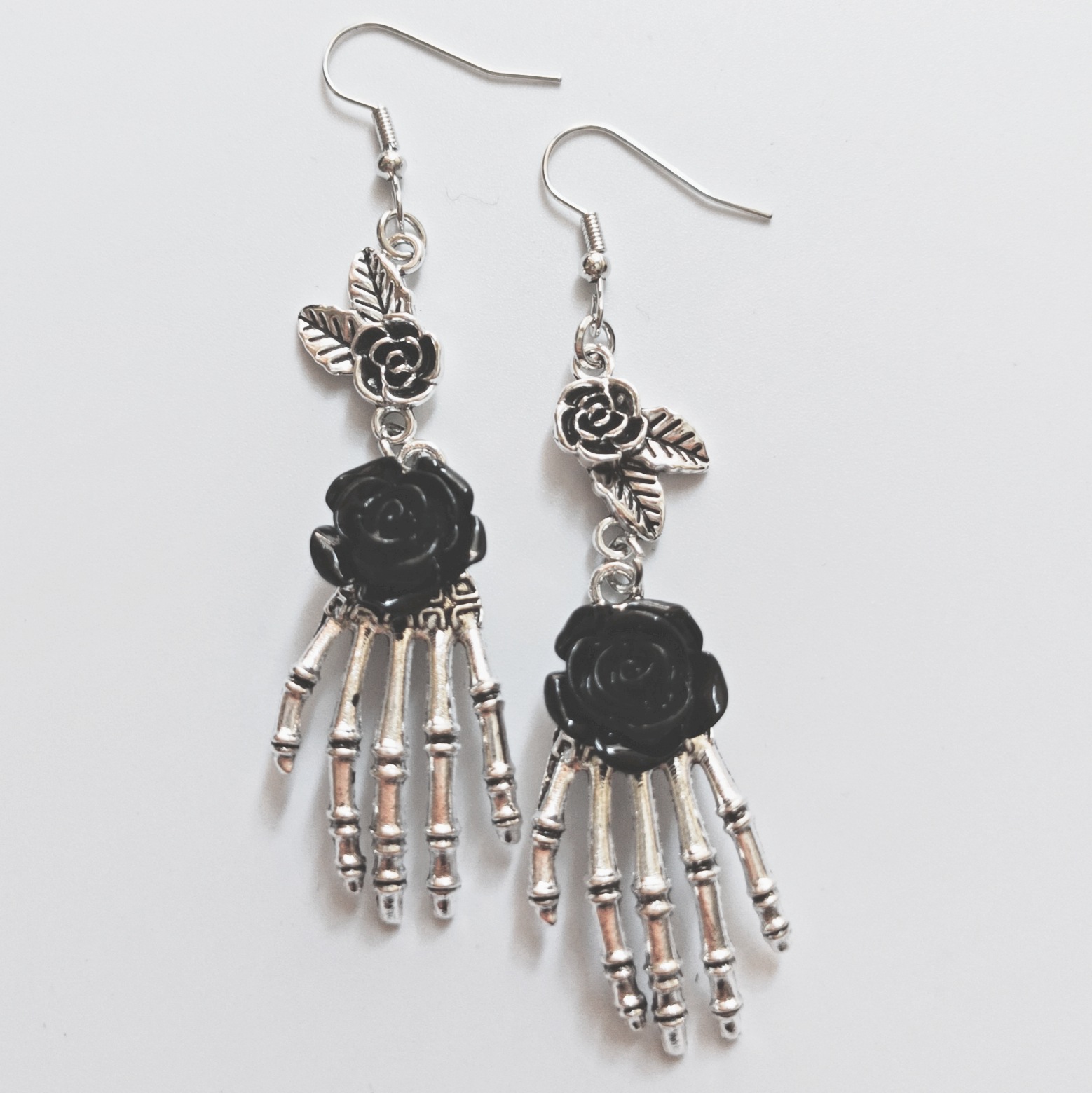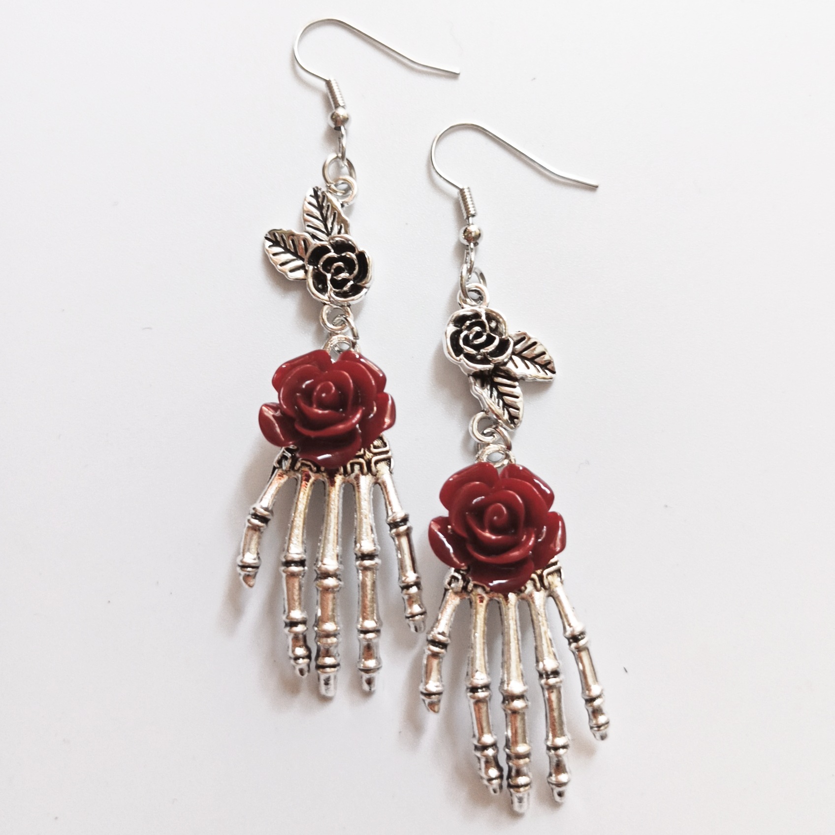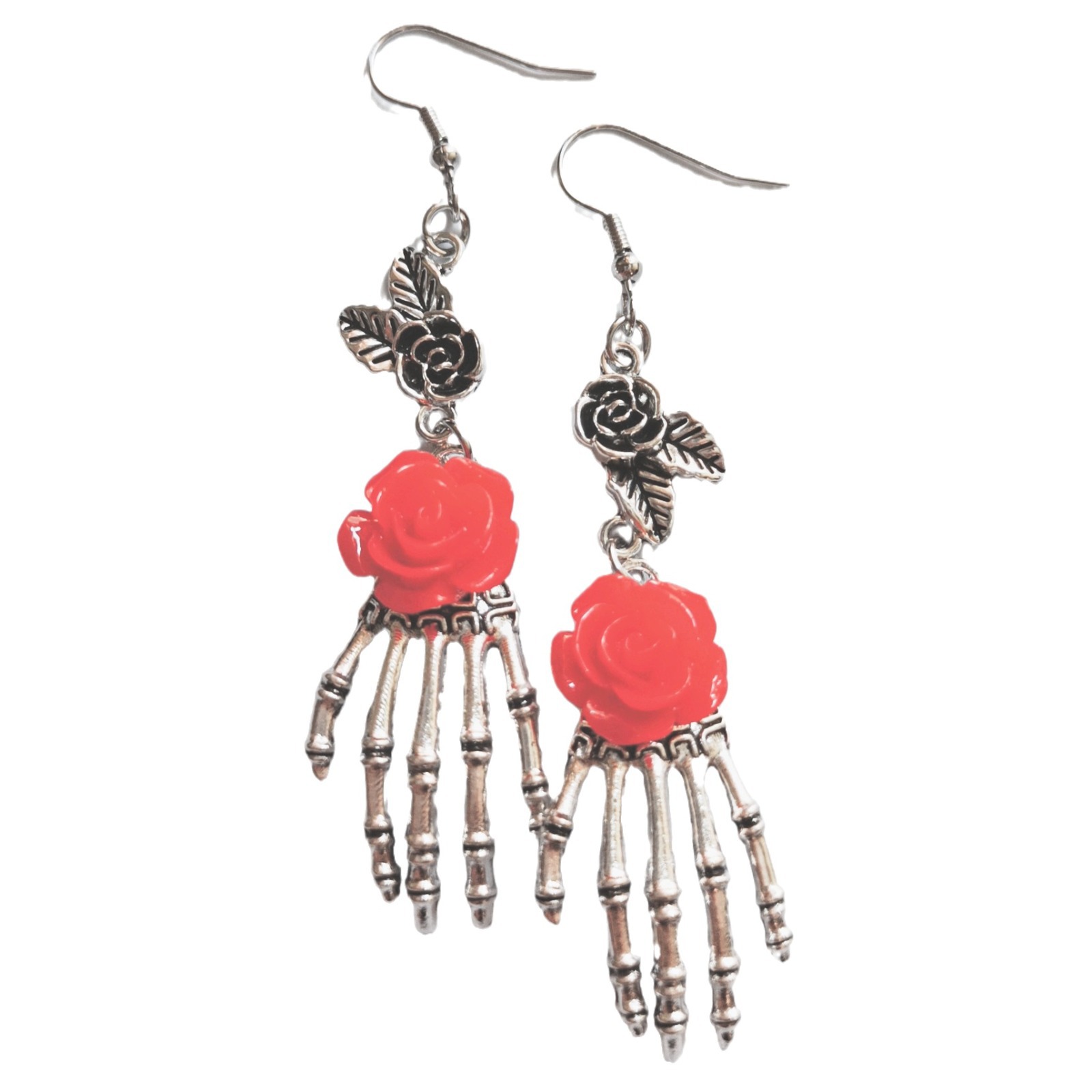 European and American new skull hand Red Rose Gothic gift handmade earrings Halloween earrings vintage jewelry