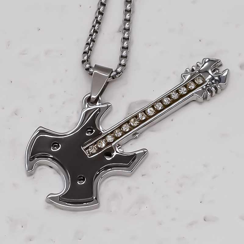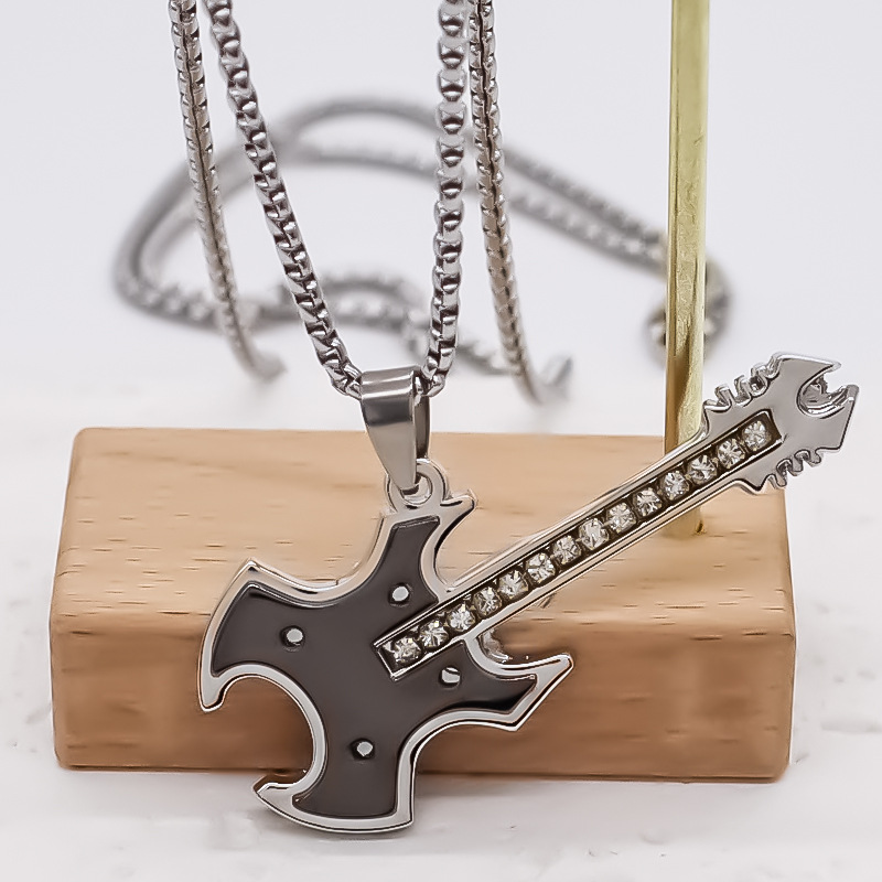 Korean style stainless steel necklace personalized all-match guitar style pendant fashion street fashion Men's rap style jewelry
