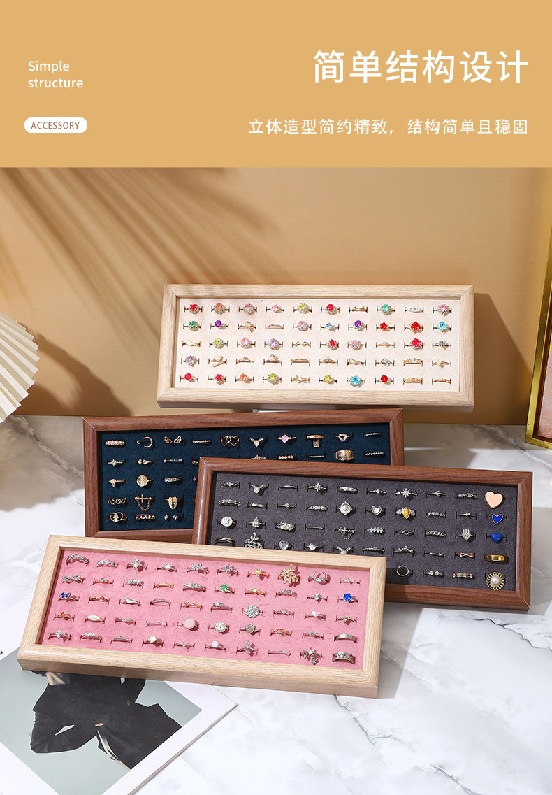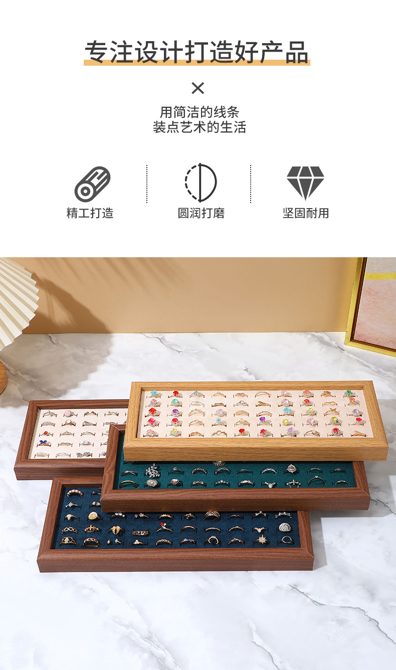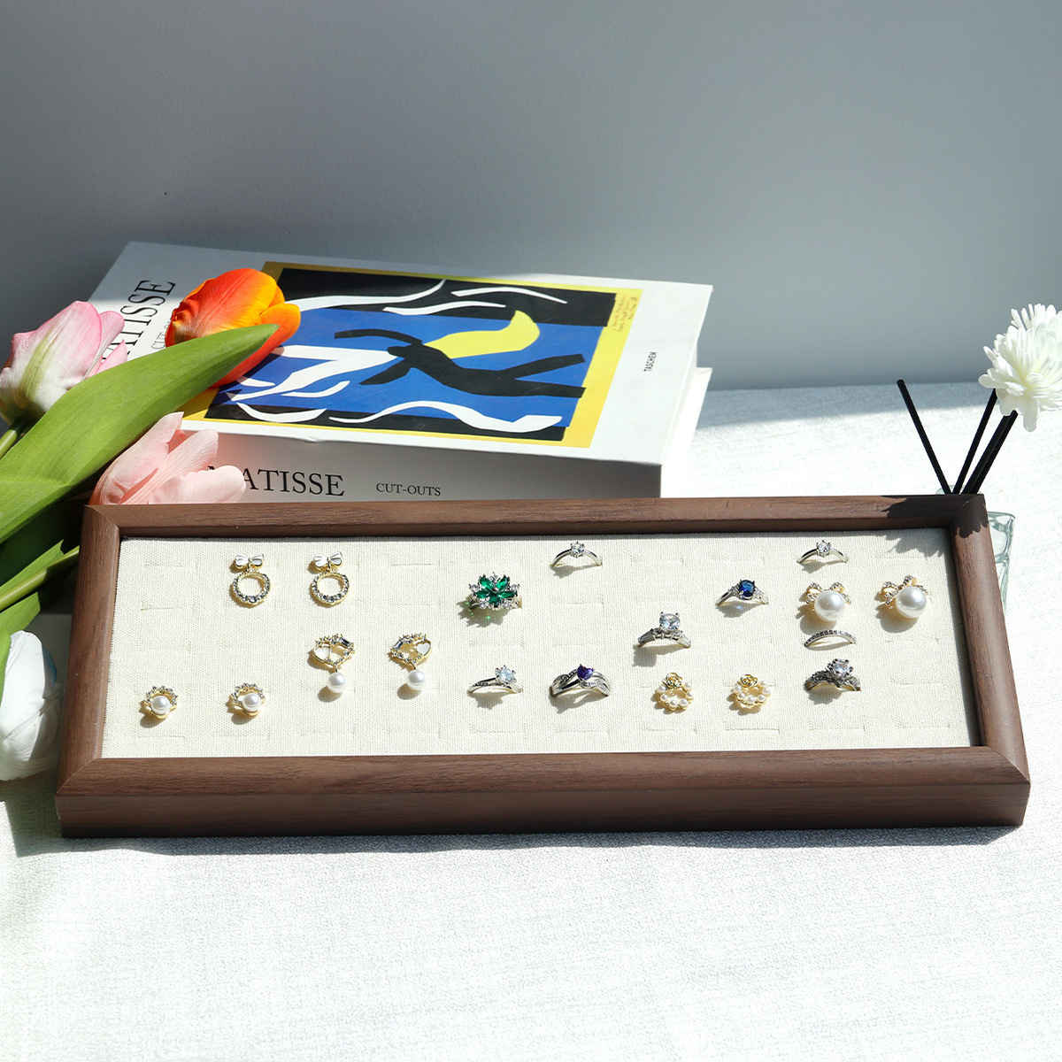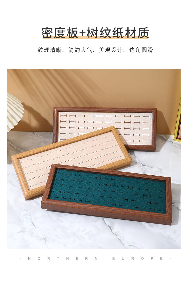 Walnut color jewelry plate flannel tray light luxury ring earrings necklace pearl chain bracelet jewelry display props