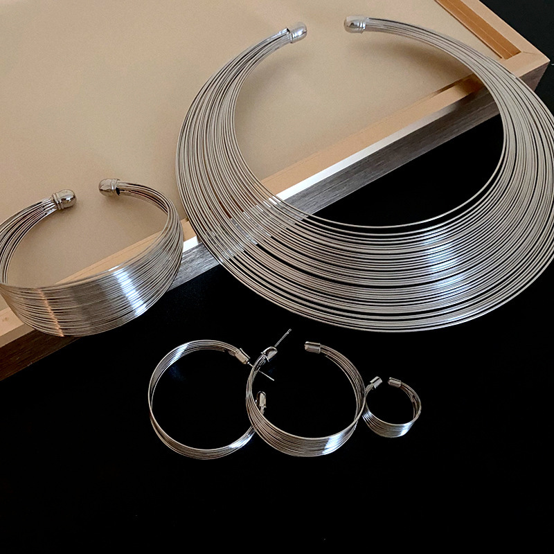 Color: 61# Necklace-Silver Geometry (Set of 2)