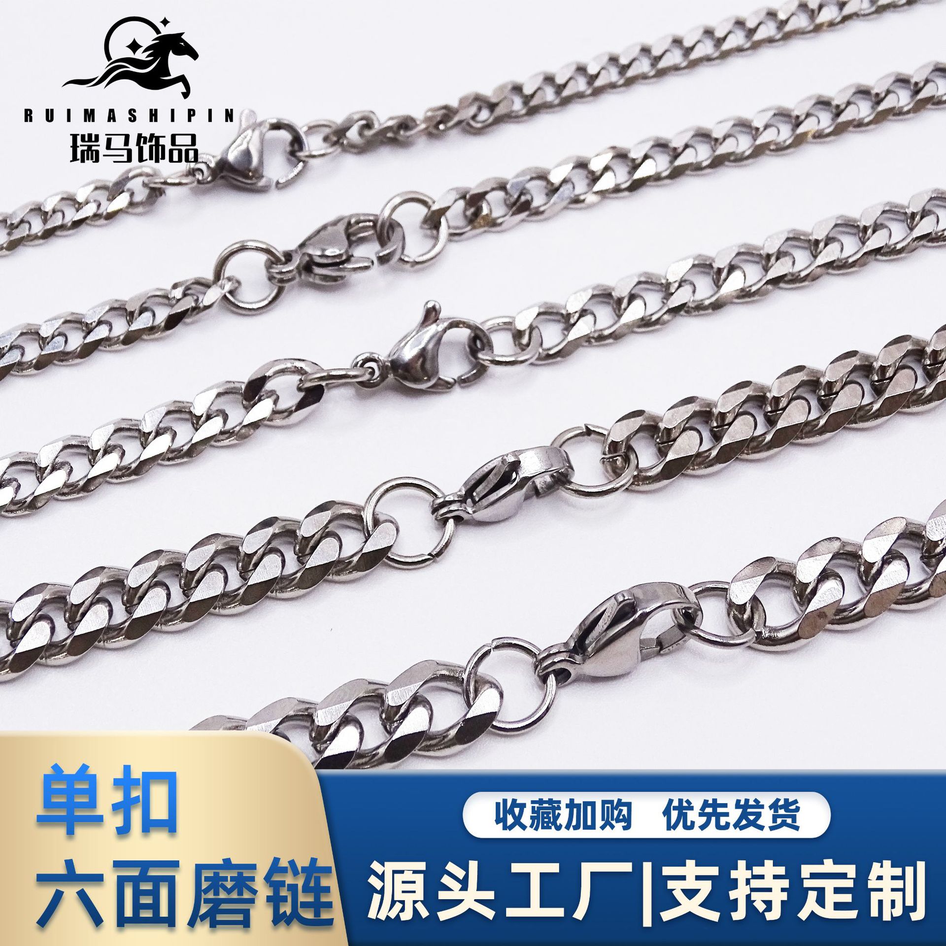 Item No.: Single buckle six-sided grinding stainless steel Cuban necklace