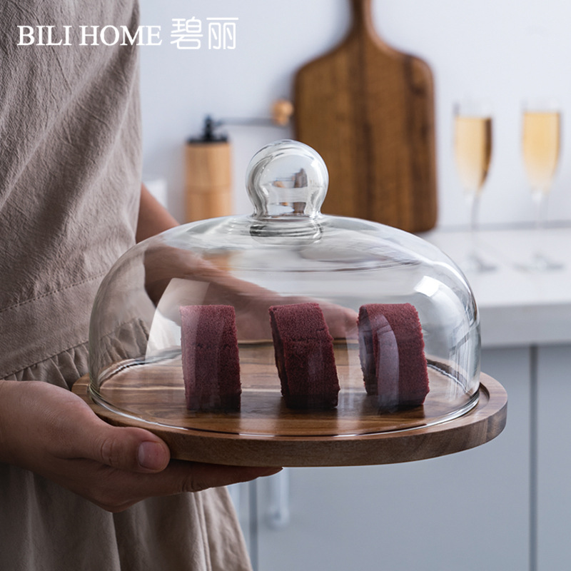 Color: 8-inch medium Acacia wooden tray with lid [bottom rotatable]]